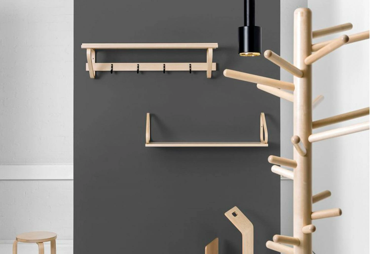 Elegant yet simple, the Clothes Tree is made of solid birch with metal feet. The highly utilitarian piece features pegs that are longer at the top and shorter at the bottom, allowing for easy organisation of items. Presented in a choice of finishes, the natural birch version is available with contrasting feet in either black or white. Distinctive in look, the Clothes Tree brings a hint of the forest to any interior.