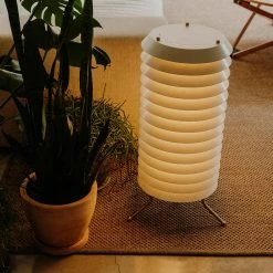 The shade of this lamp is made of thin painted metal strips that prevent glare by diffusing light evenly. The asymmetrical shape is reminiscent of an angel’s wing – hence the nickname ‘Angel’s Wing floor lamp’.