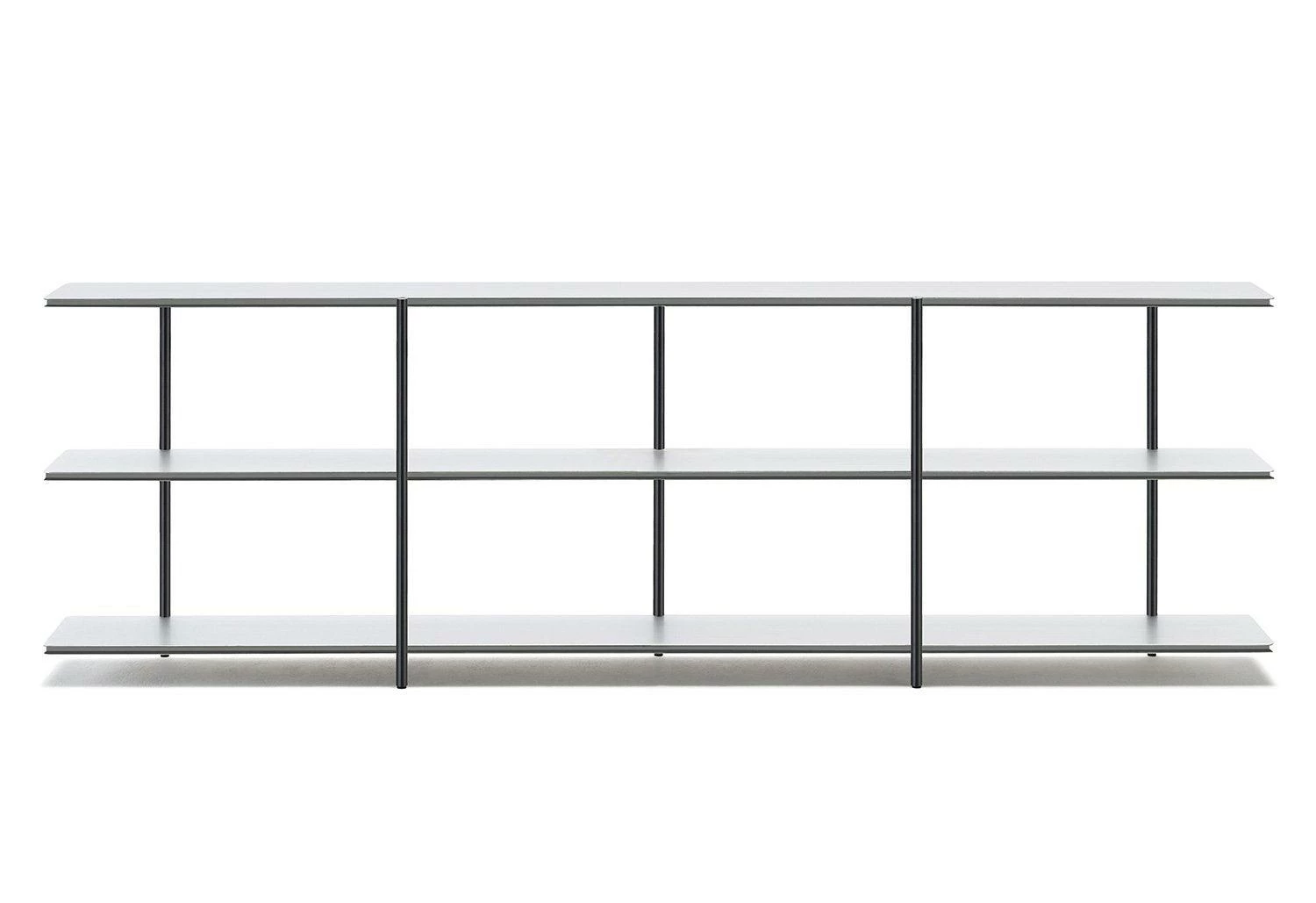 The elegant Aero bookshelf has shelves that, supported by slim vertical rods, almost appears to be floating.
