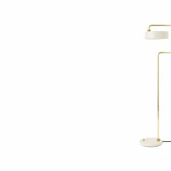 The Alba 382 floor light features a single downward-facing opaline glass diffuser on a right-angled branch.