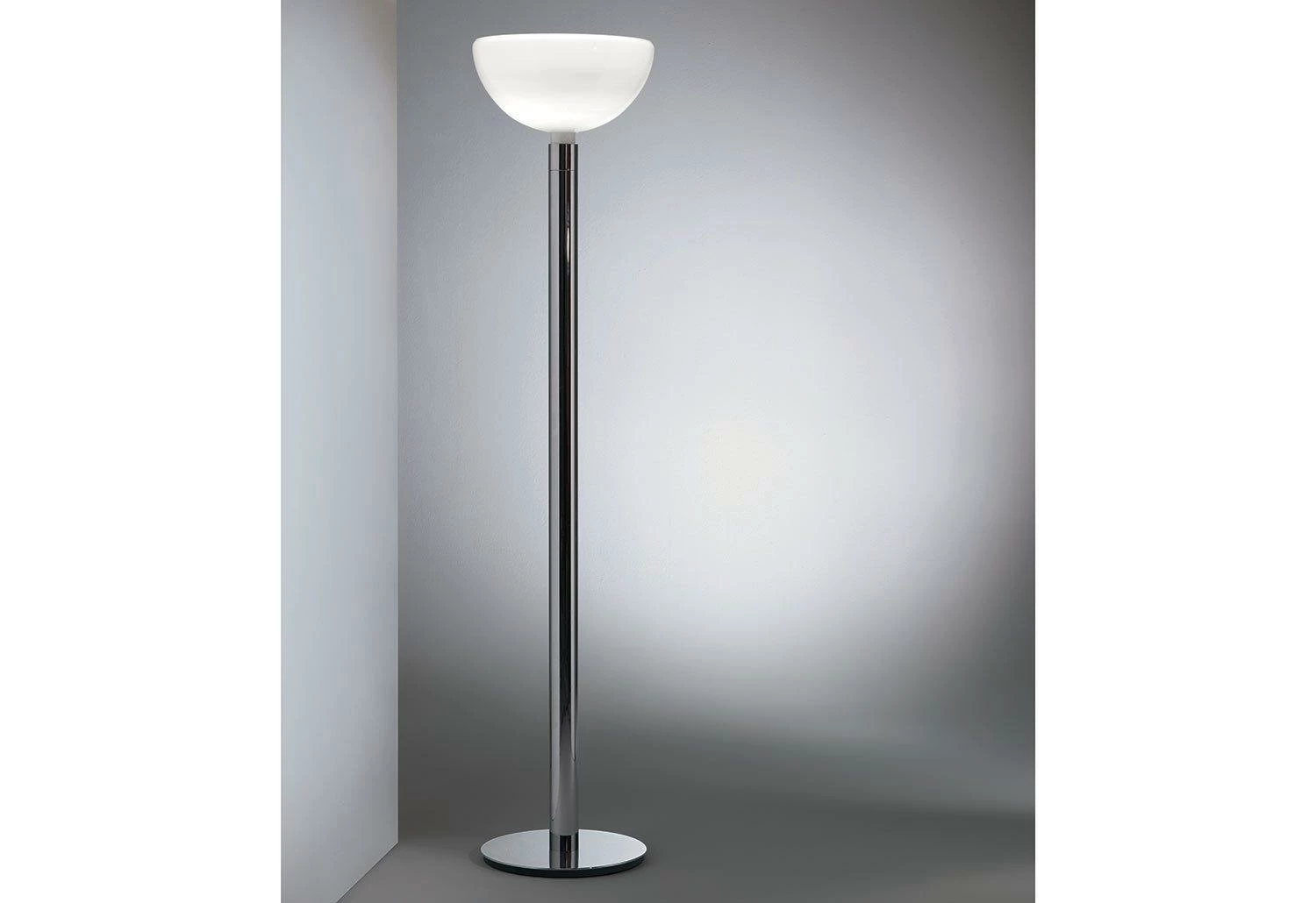 Franco Albini floor light designed in the Italian modern style. When illuminated, the light has an upward distribution, with a softer light diffused through the opal glass.