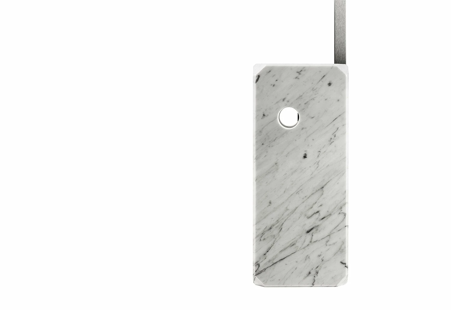 “We were thinking about a lamp that shines light onto a table. They already existed, but you had to walk around them. To leave enough space around the table, the base had to be at least two meters away. Which was how the idea for Arco came into being. We wanted to make it with commercially available parts and we found that curved steel angle iron worked perfectly well. Then there was the problem of the counterweight: a heavy-weight was needed to support it all. Our first thought was concrete, but then we chose marble because the same weight took up less space, and also because we could obtain a better finish for a lower cost. In Arco nothing is decorative: even the bevelled corners on the base have a function, which is not to hurt us; even the hole isn’t a flight of fantasy, but to make it easier to lift the base.” Achille Castiglioni.