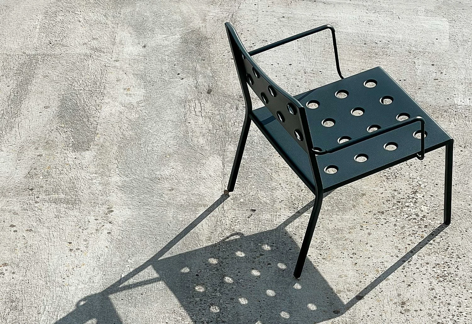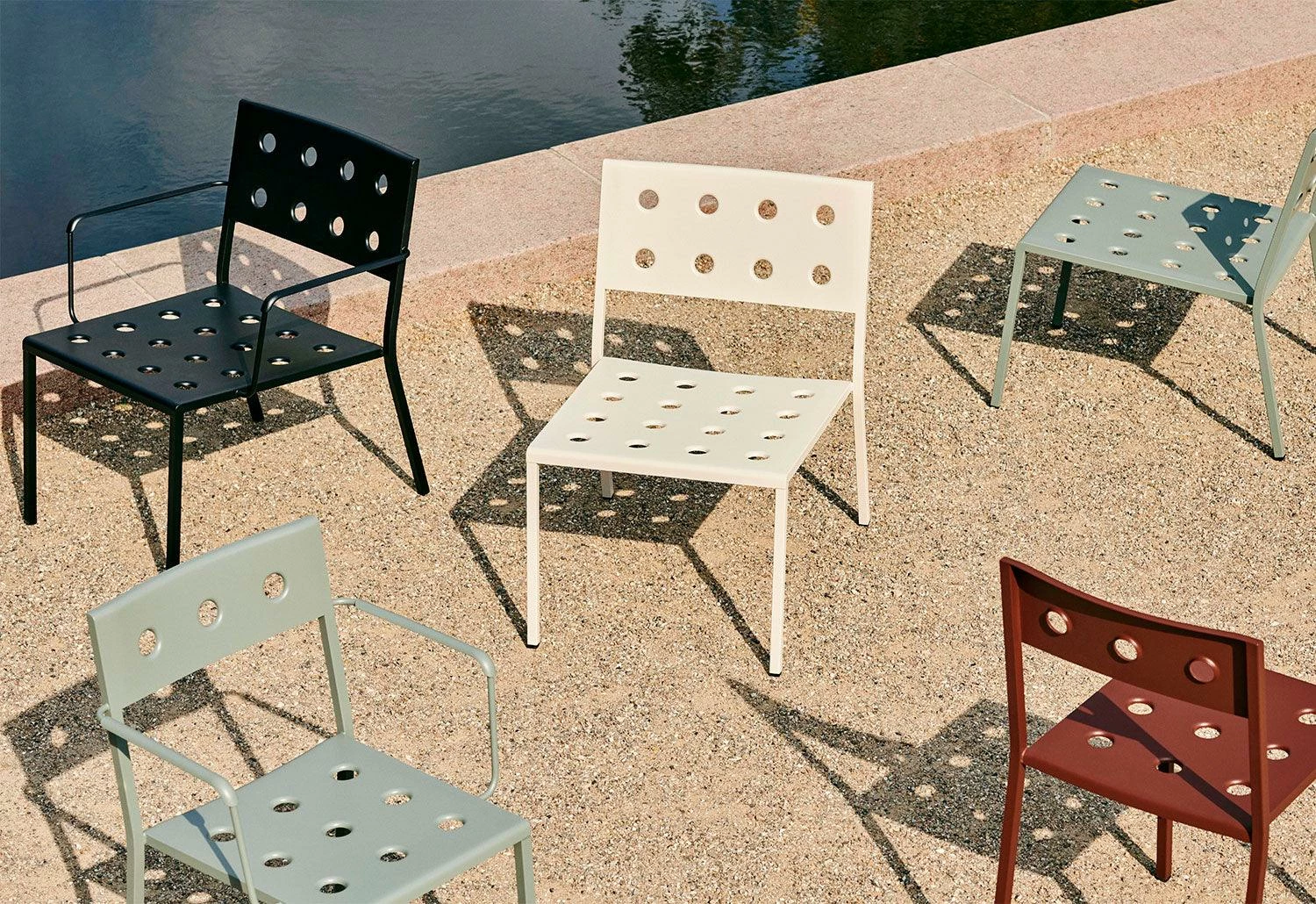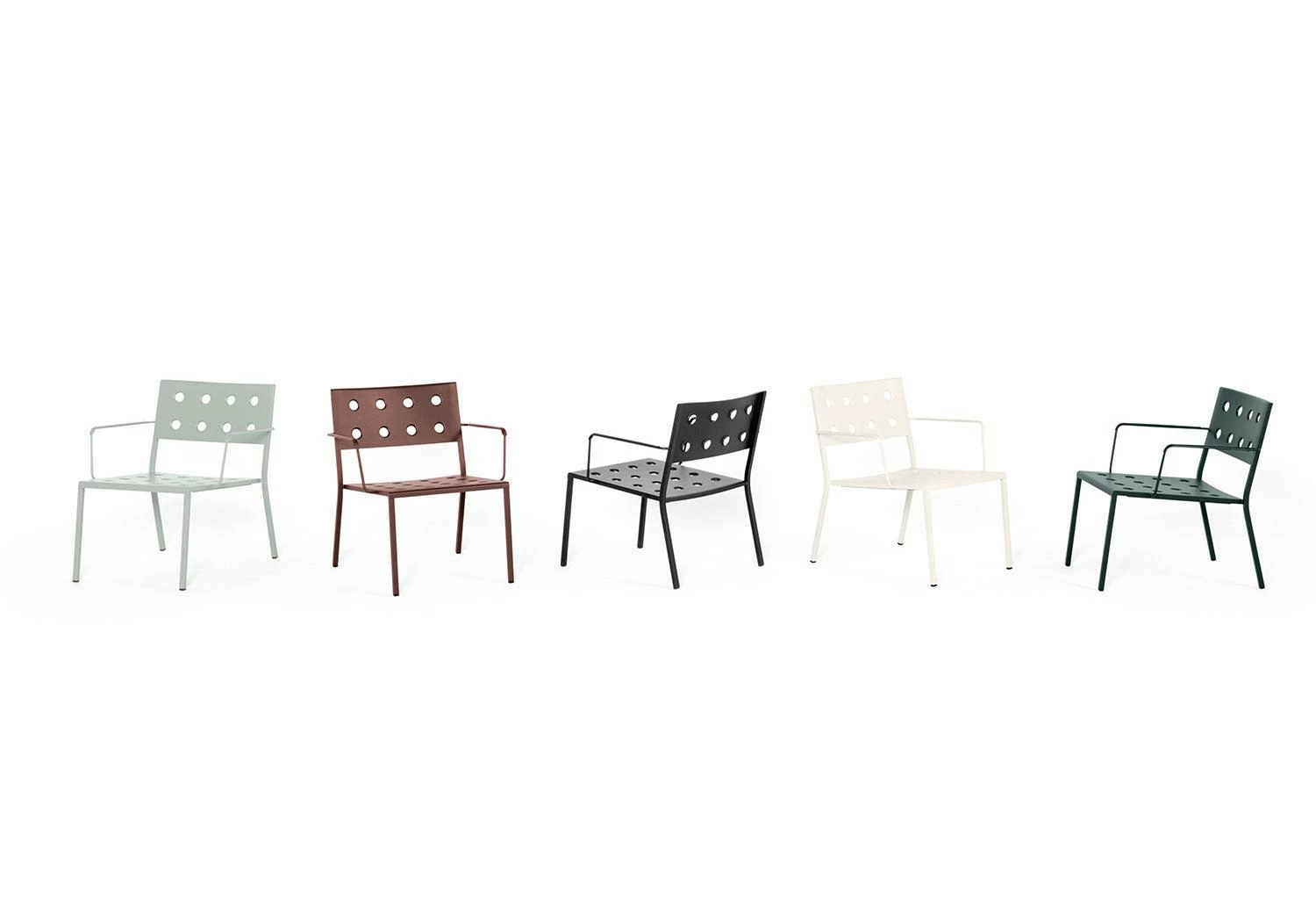 An elegant new outdoor furniture collection from HAY comprising of side chairs, armchairs, lounge chairs, tables and benches, the Balcony collection stands out with its unique symmetrical holes incorporated into the design. With minimal welding made possible by the presence of the symmetrical holes which provide extra stability, the collection is aesthetically soft on the eye without compromising with strength or comfort.