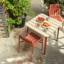 The Balcony table is available in five different colours and four different sizes. Pair it with the Balcony chair, Balcony armchair, Balcony lounge chair or Balcony bench to set up the perfect outdoor space.