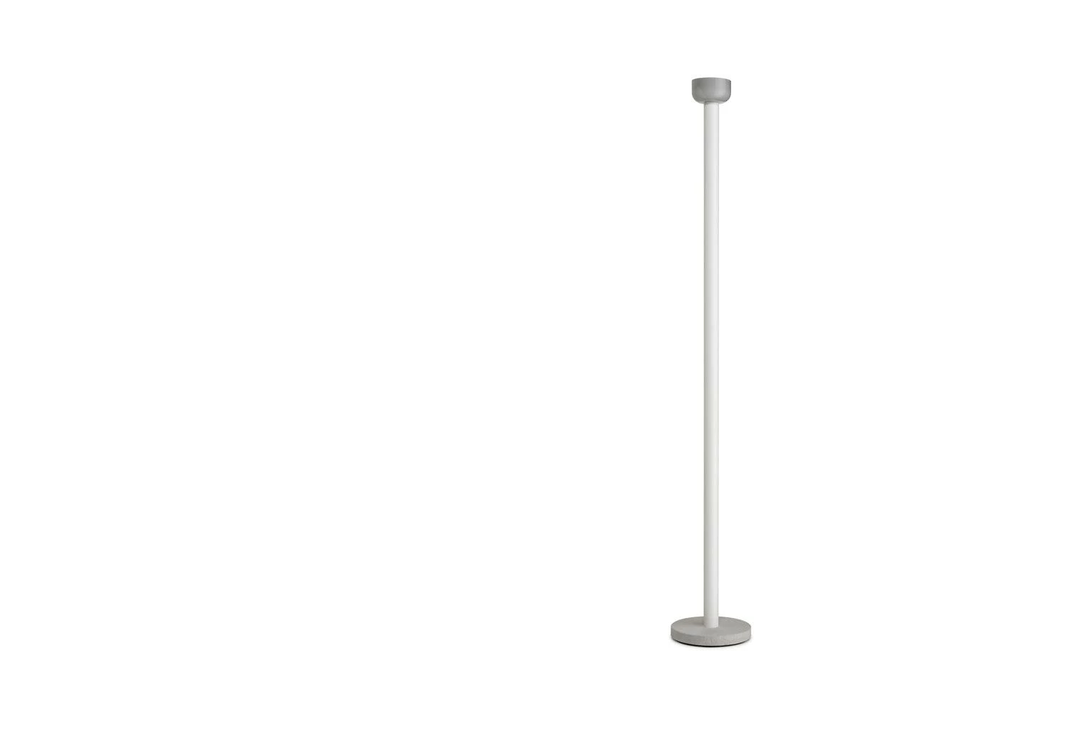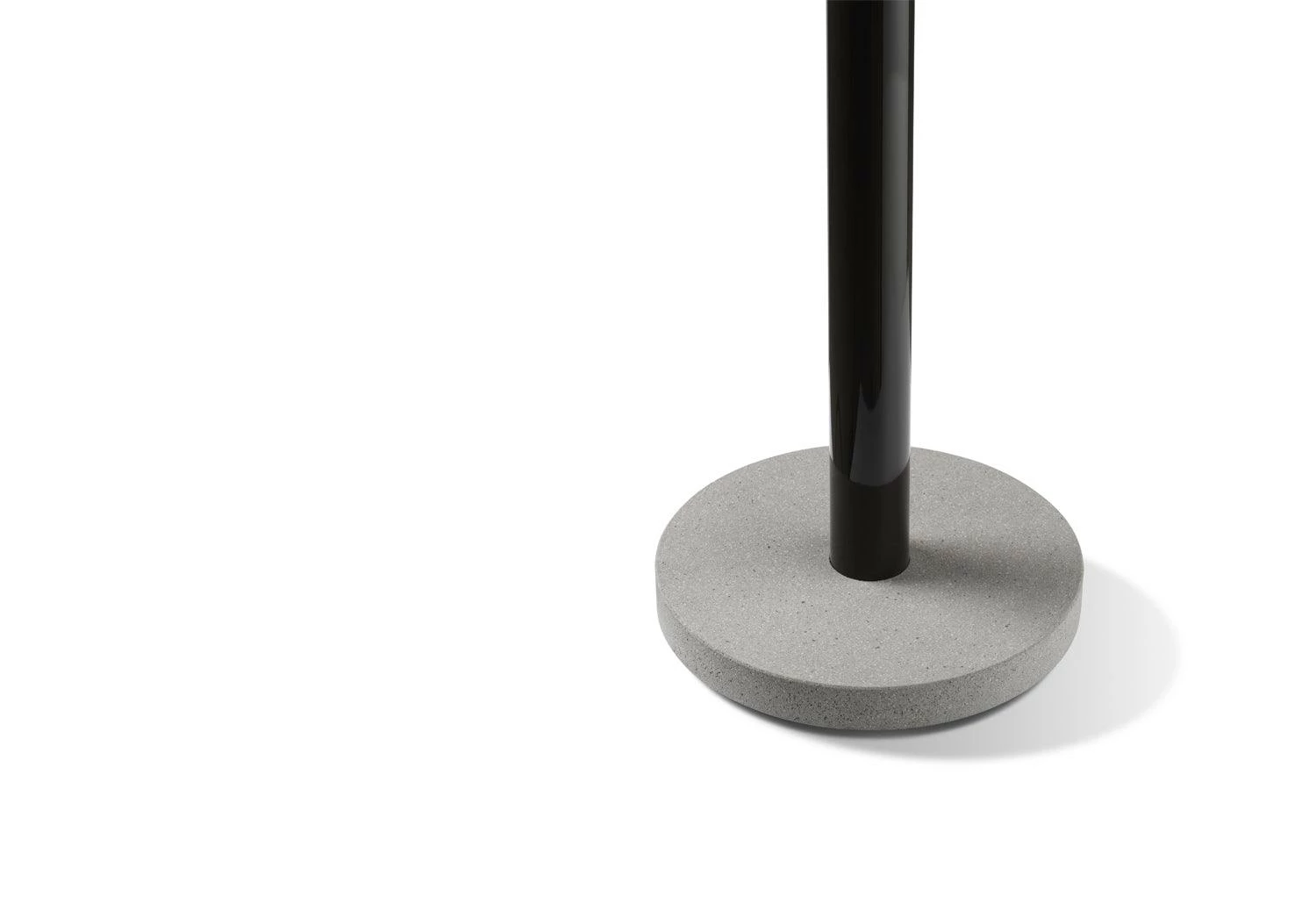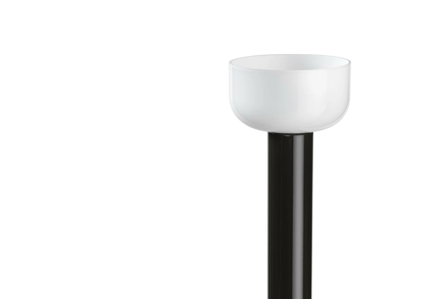 The Bellhop Floor lamp is the newest member of the Bellhop Family, by Barber Osgerby. Similar in form to the portable table lamp, the shade has instead been upturned and crafted in hand-blown opal glass, sitting upon a slender painted aluminium stem with a contrasting concrete base. The bold colour palette and selected materials visually referencing the Memphis design movement.