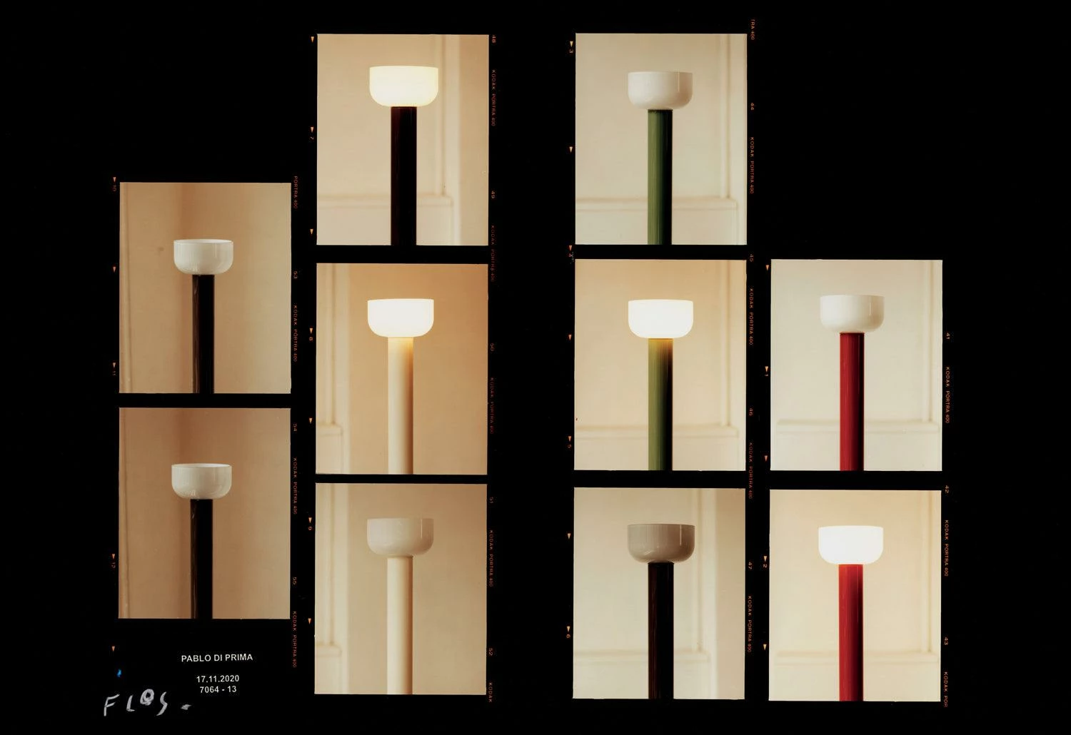 “We suggested to Flos that we should make an uplighter as part of the Bellhop collection. So, we flipped the top upside-down, but we needed a bit more character for such a large scale lamp. We did this by making the top glass, which gives a really lovely glow” – Edward Barber.