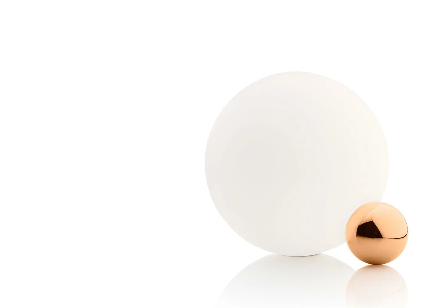 Copycat is a graphic table lamp formed from two touching spheres that hold each other in a delicate balance. Michael Anastassiades’s designs are notable for their refined sculptural quality and Copycat is no exception.