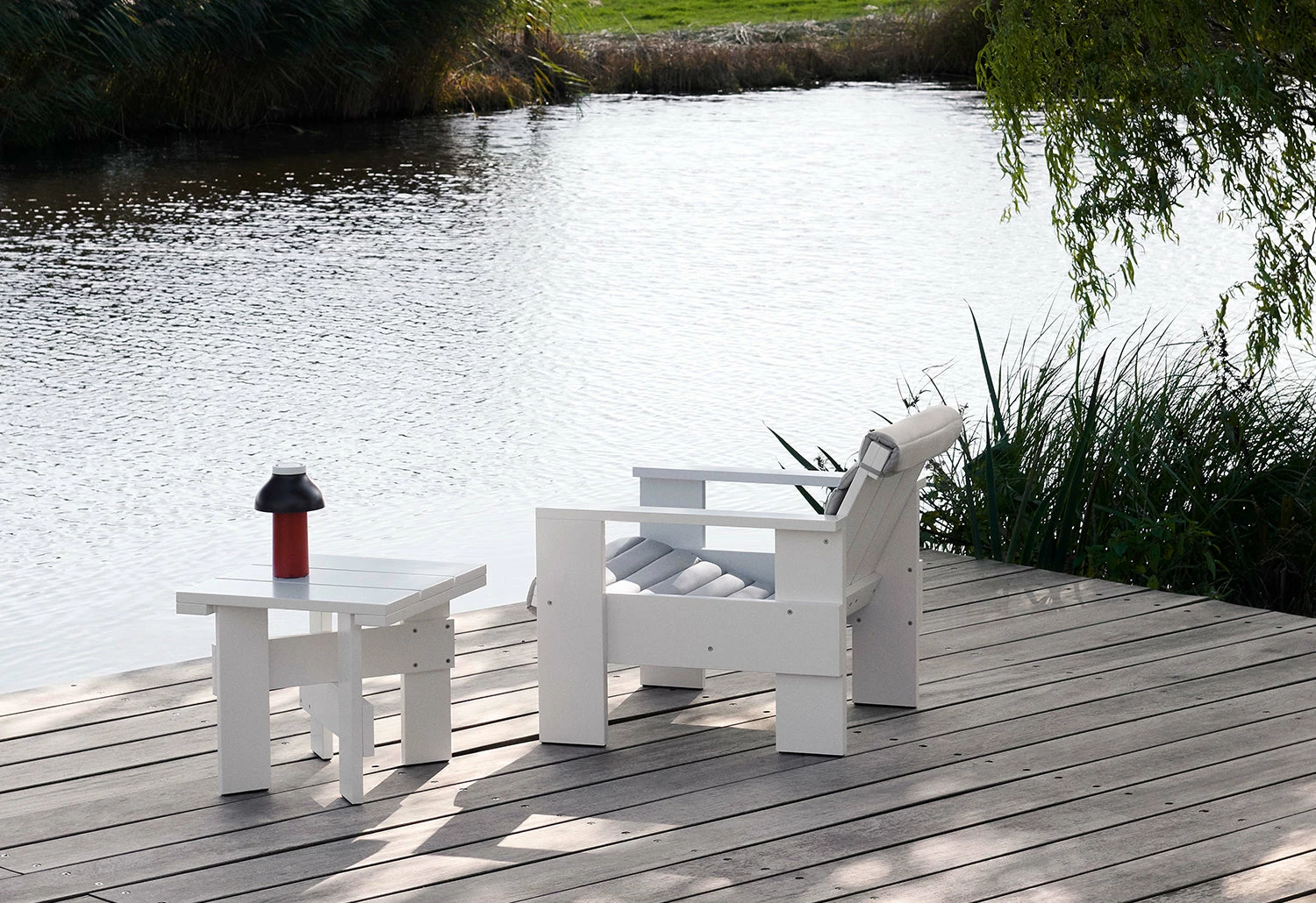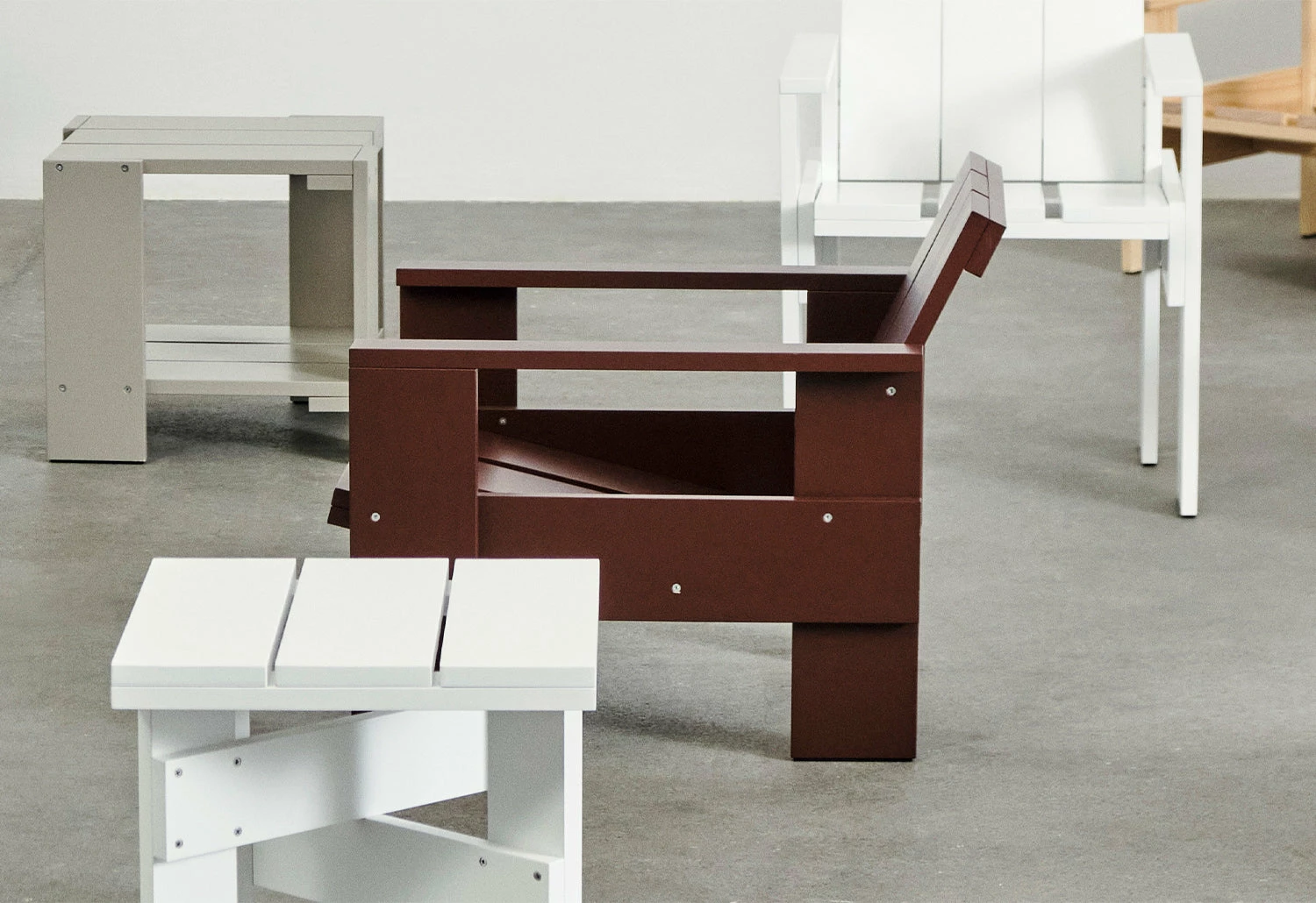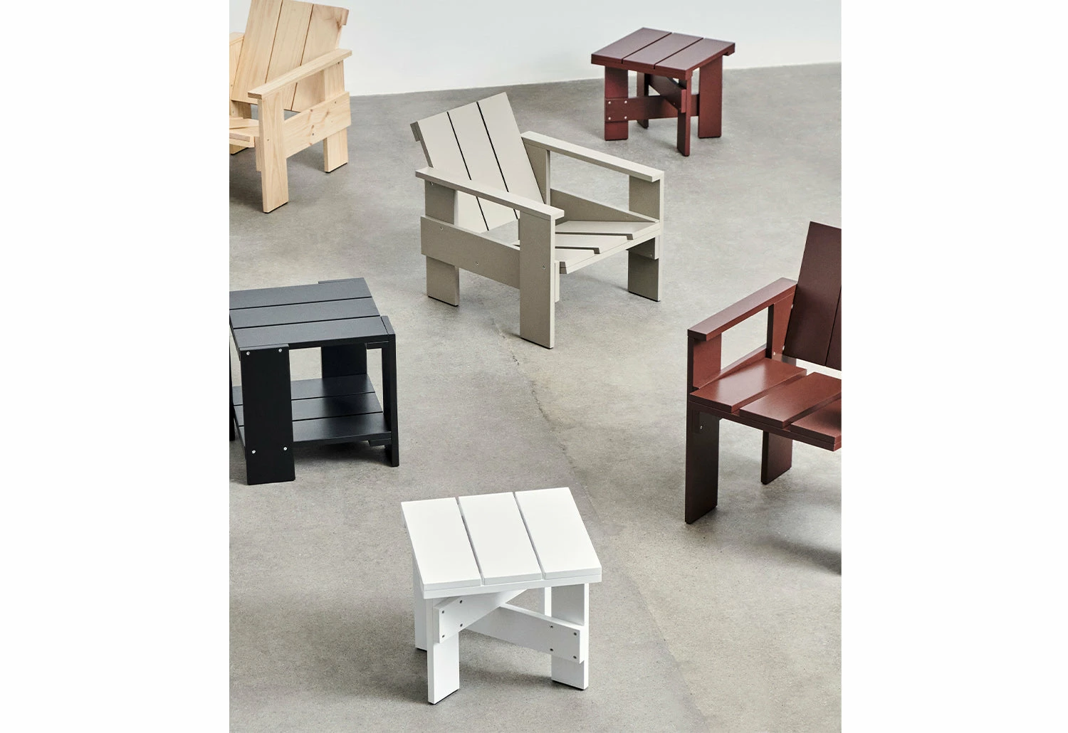 Discover the timeless design of the Crate Collection, first created in 1934 by the renowned Dutch architect and designer Gerrit Rietveld. The collection features modern and functional furniture crafted from surplus wooden crates, including a lounge chair, dining chair, low table, and side table. The simple, well-designed pieces are made of solid pine and finished with a water-based coating, making them ideal for indoor and outdoor spaces, from cafes to private gardens.