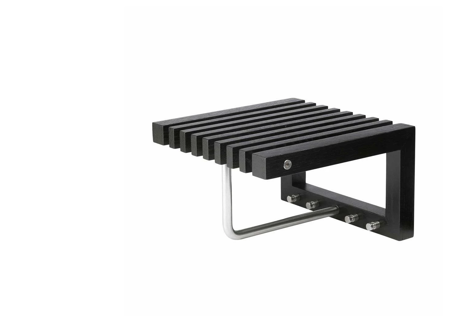 The Cutter collection includes a bench, wheeled storage boxes and wall mounted shelf with hooks and hangers that can be grouped or bought individually. Designed by Niels Hvass, the detailing within the family exposes their precise construction.