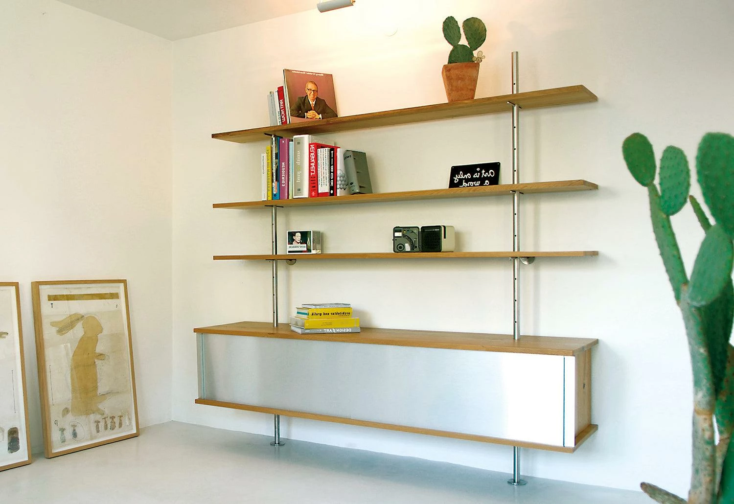 The Eiermann shelving system was designed by Egon Eiermann in 1932 for the prestigious ‘The Growing House’ exhibition in Berlin. The Eiermann Shelf can be combined with different materials, an optional integrated cabinet and other accessories in various ways to match your needs and preferences.
