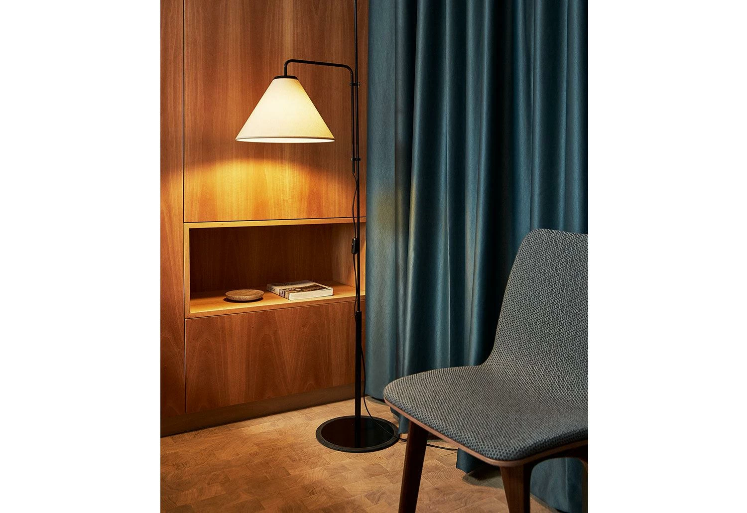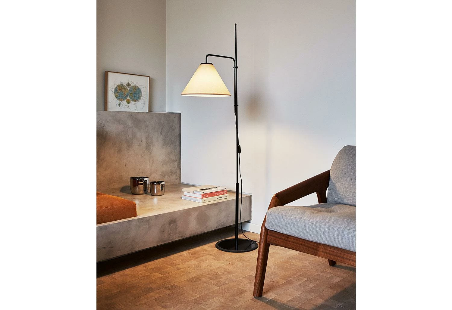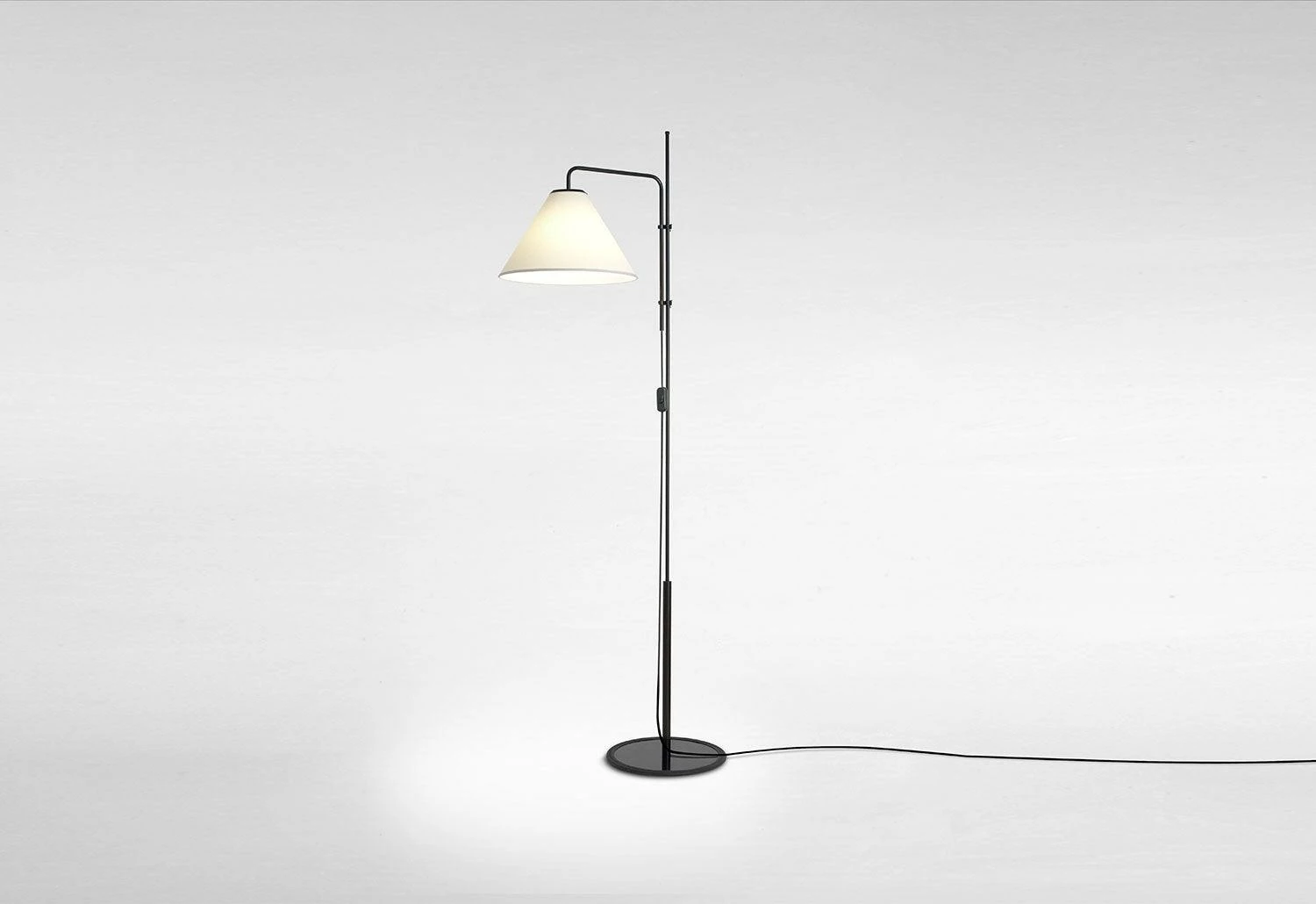 The successor to the original Funiculí floor lamp, the new version comes with fabric shade. First designed by Lluís Porqueras in 1979, this version of the lamp is now finally available this year.