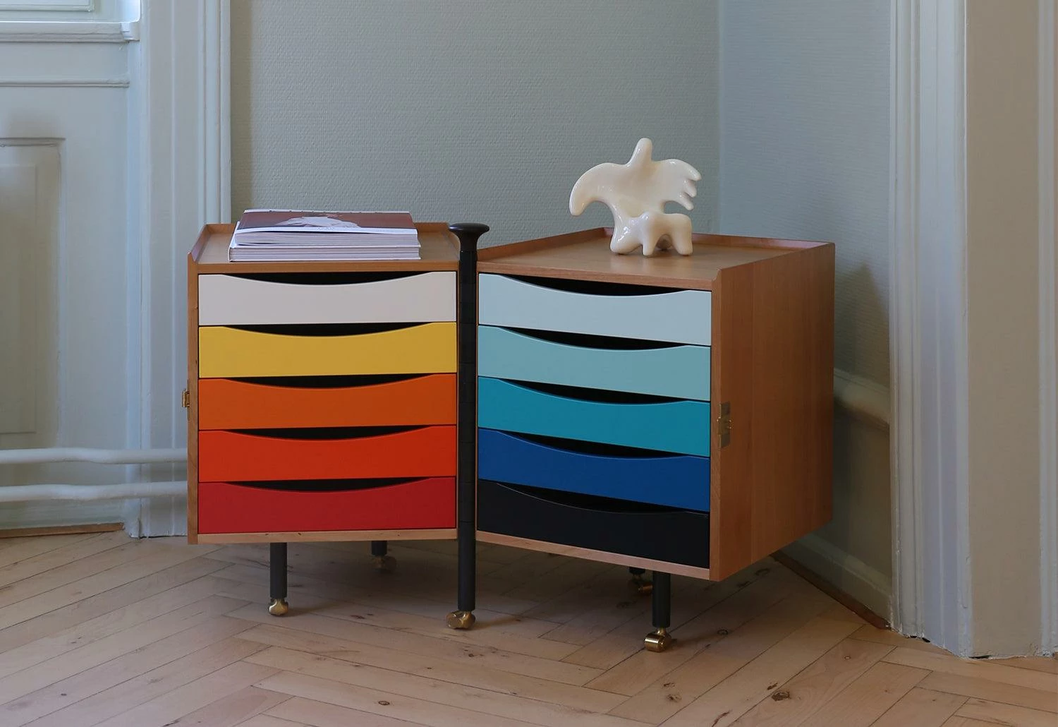The Glove cabinet was designed by Finn Juhl for his wife in 1961 to serve that very purpose – a storage solution for her many pairs of gloves. Since then, the Glove cabinet has proved to be a timeless piece of Danish furniture design.