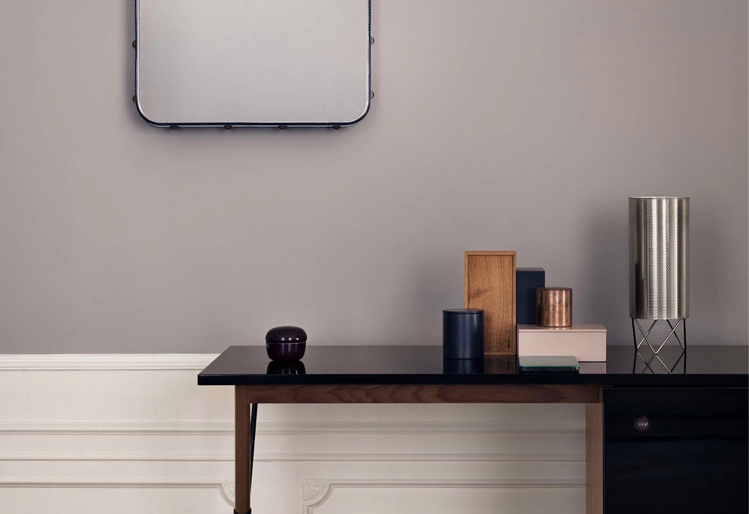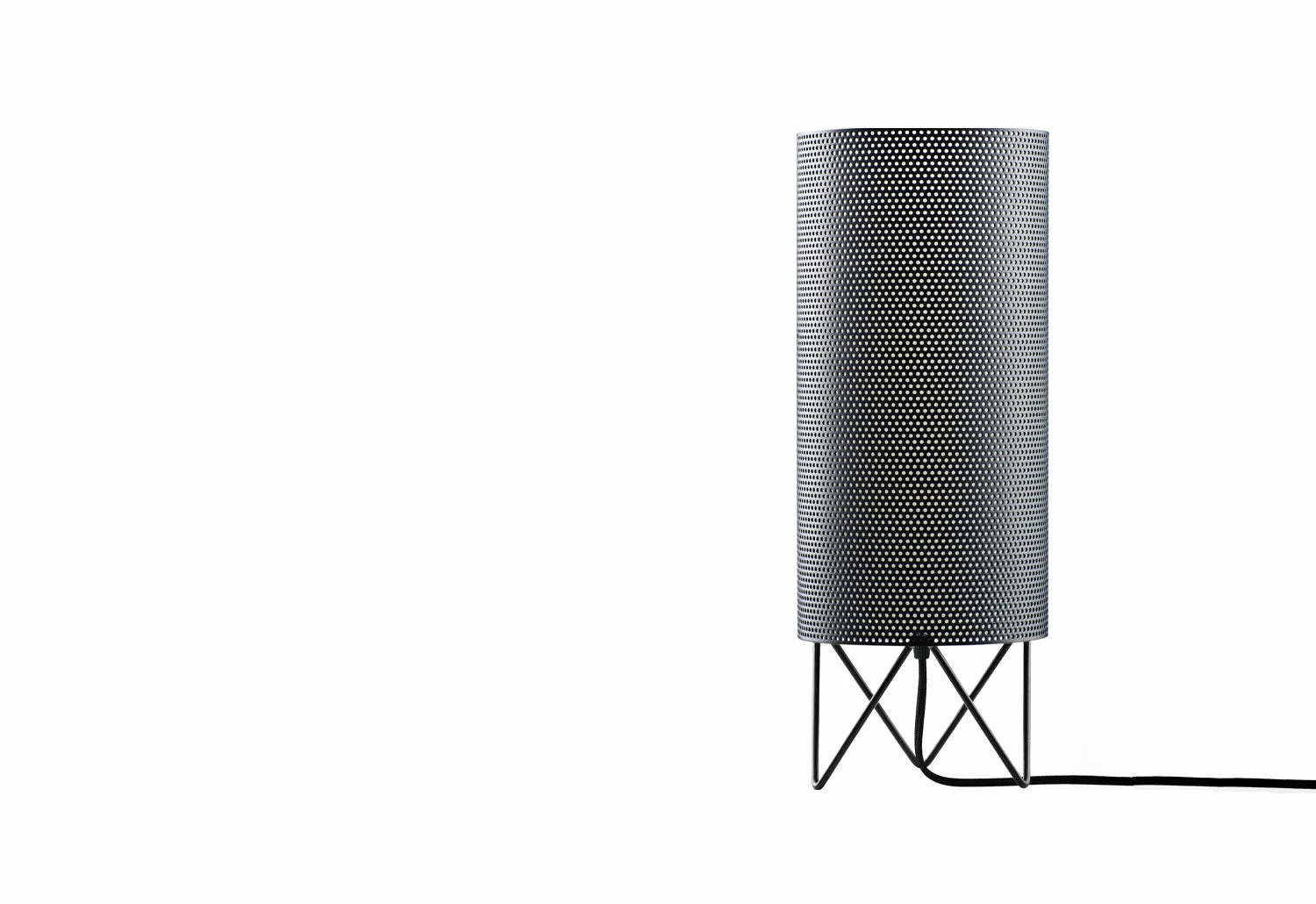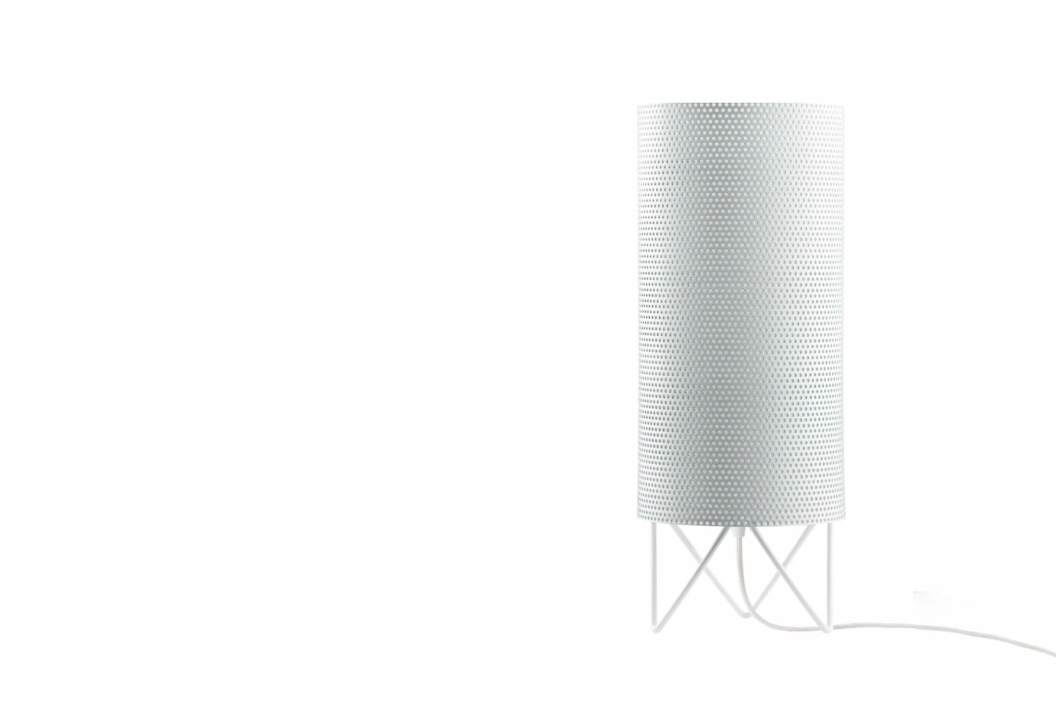 The H2O Table lamp has a powerful, austere character and a warm atmospheric glow. An evolution of the PD2 floor lamp; it shares the same perforations and cylindrical form as its predecessor, both of which are design features inspired by the building itself.