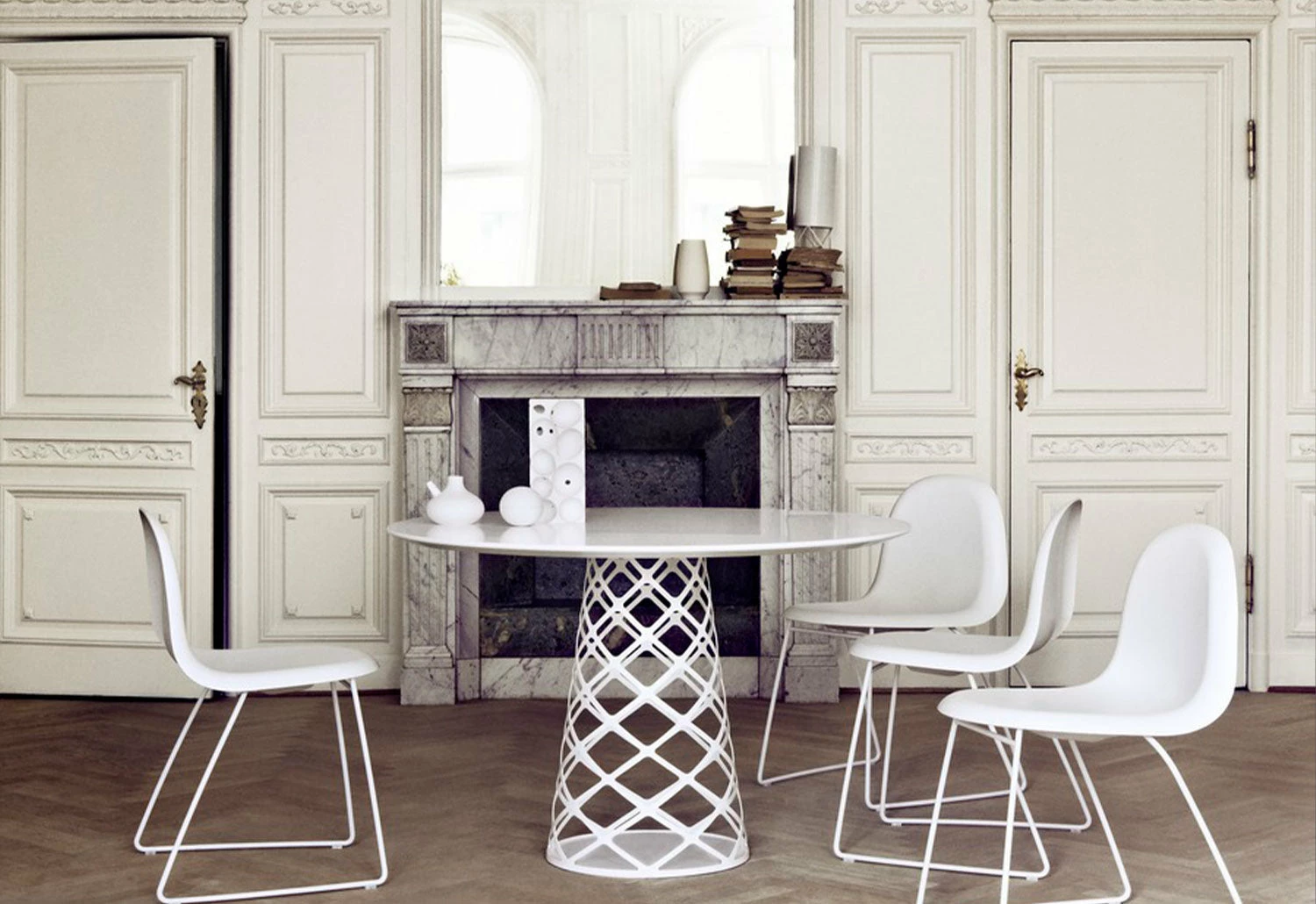 The loft space of La Pedrera was restored according to Gaudí’s original vision in 1991. Most of Corsini’s design was torn down and disposed of during the renovation, but the architect and gallerist Joaquim Ruiz Millet located the PD2 Floor Lamp and saved it from being thrown away; this led to Ruiz Millet and Corsini collaborating and recreating Corsini’s original designs.