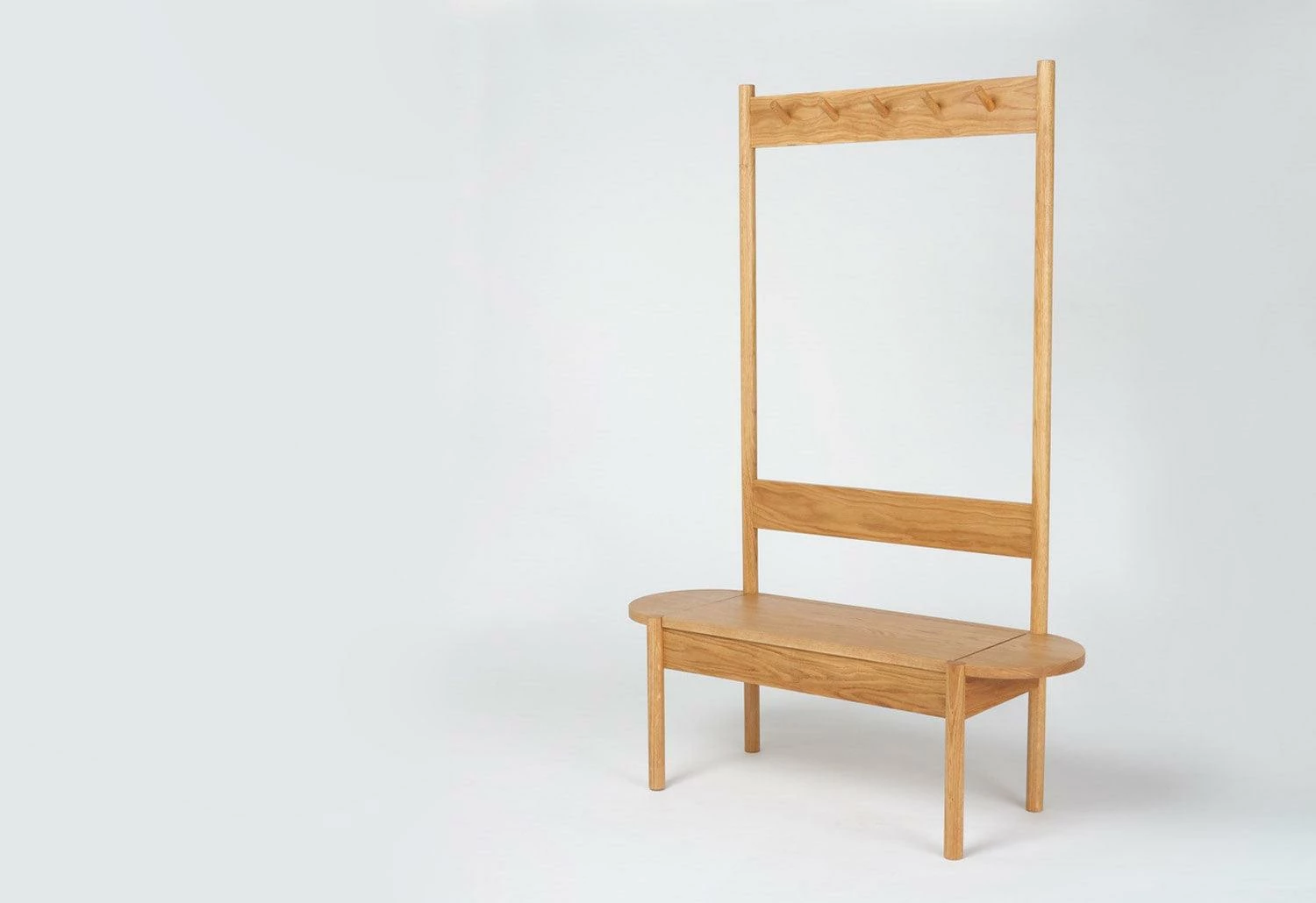 Another Country’s Hallway Bench is a practical and stylish seat with functional detailing. Designed by Fred Rigby as a solution to the daily act of leaving and entering the home, the bench acts as a seat and storage for coats and bags.