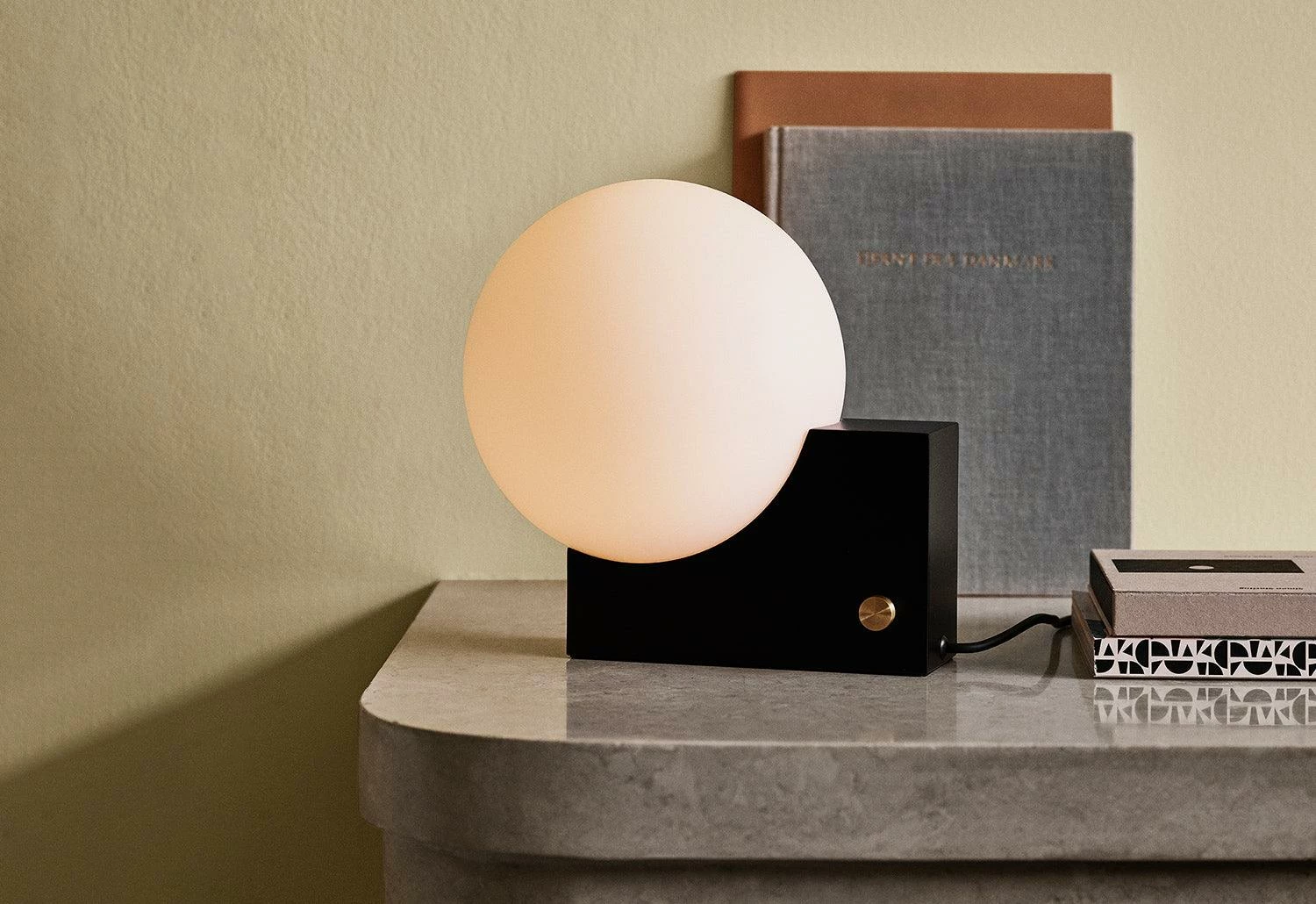 The Journey lamp was crafted in 2018 by Danish designer Signe Hytte. Embodying a combination of classic geometry, the Journey lamp creates a calming lighting ambience. Its spherical opal glass shade is inspired by the full moon, which sits on a rectangular base which is available in subtle colour variants. Its contemporary design makes it suitable for any type of interior setting.