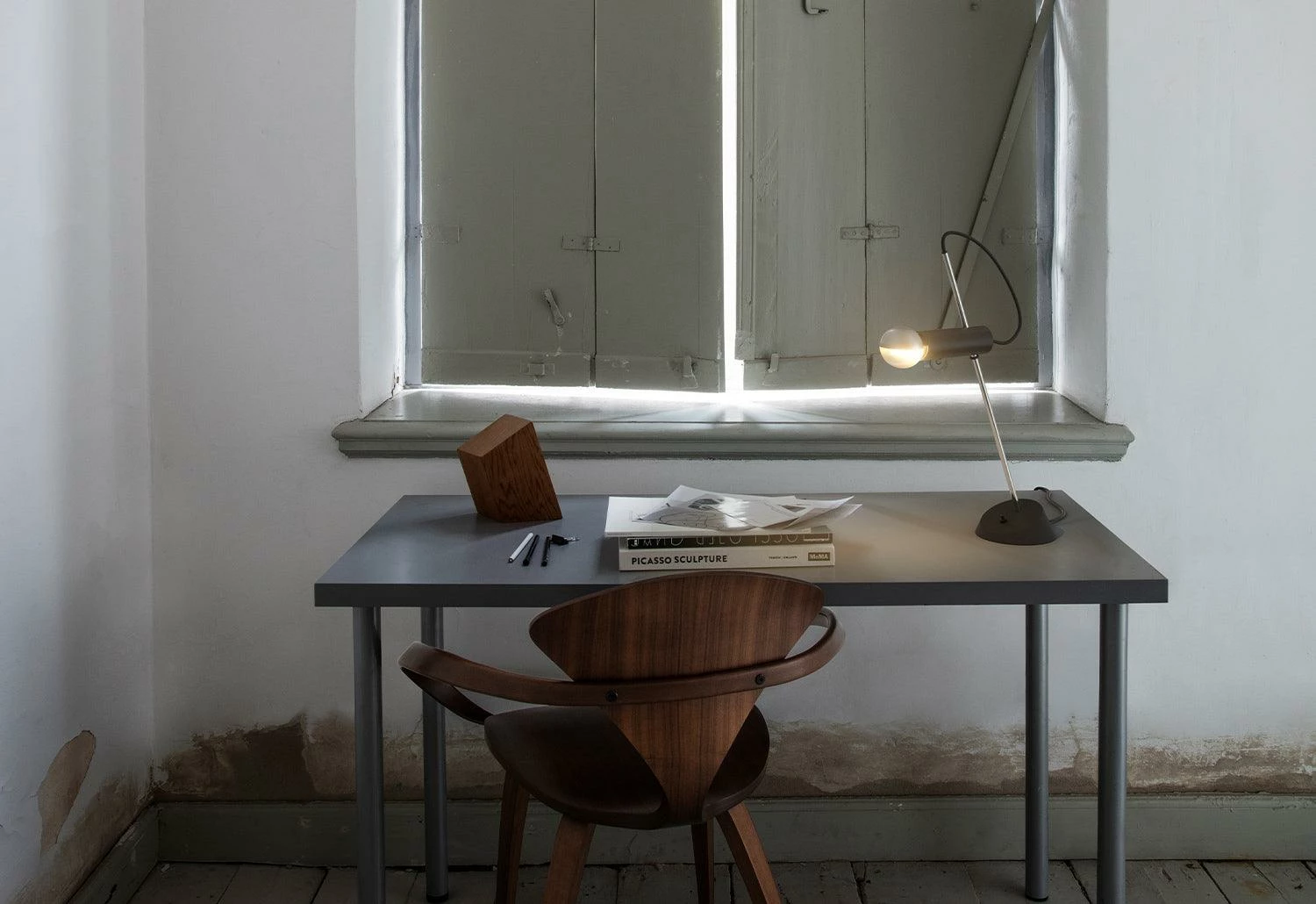 Create a cosy reading corner with the Astep 566 table lamp. Perfect for home office, living room or bedside use. Designed in 1956 by the renowned Italian designer Gino Sarfatti, the design features a contrasting body tube that supports the Cornalux bulb and a base made from aluminium, magnesium and copper providing the perfect amount of friction of maximum height adjustability.