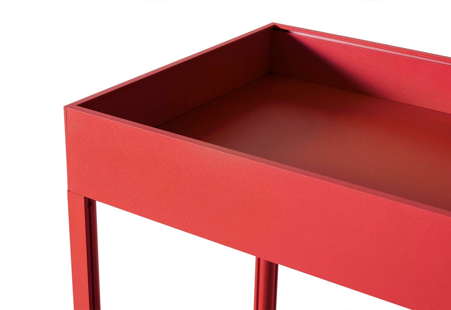 Available in army, charcoal, light grey and red powder-coated aluminium.