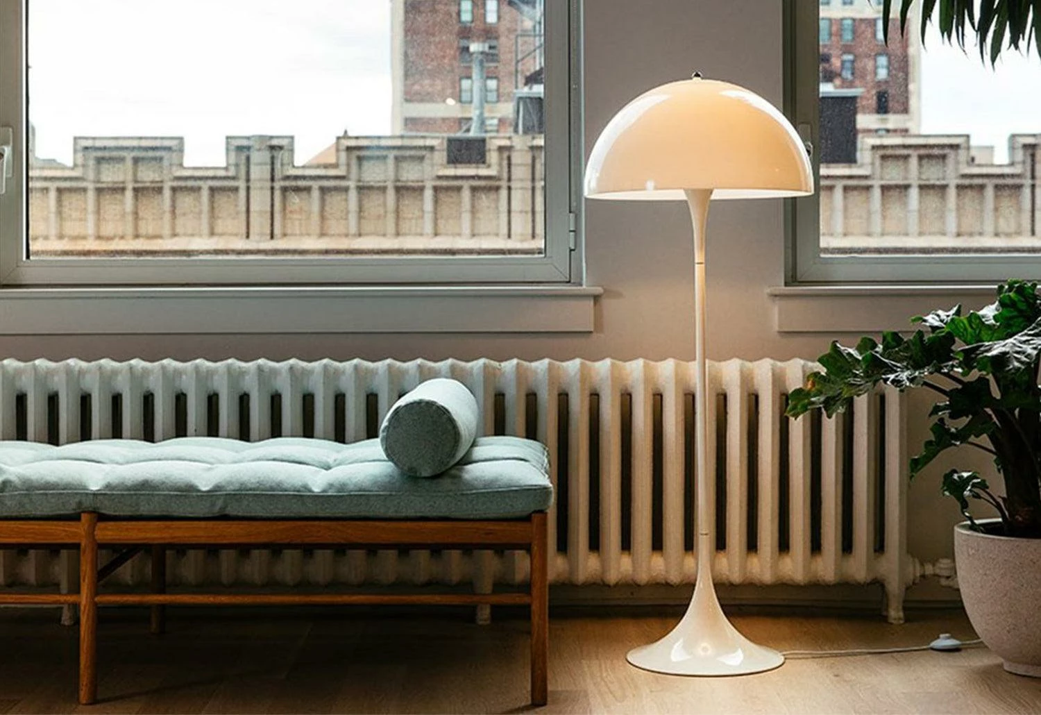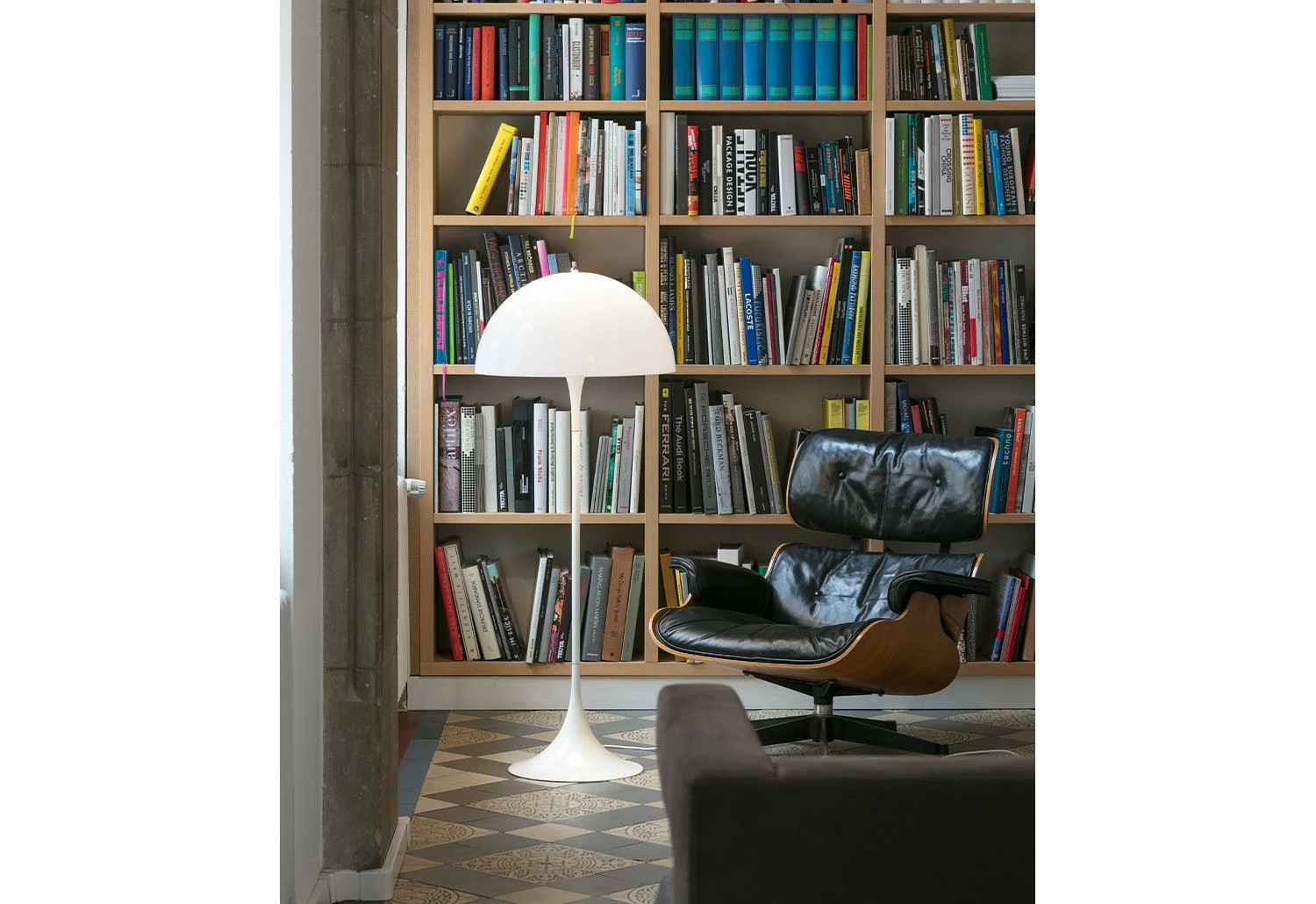 The Panthella floor light has a hemispherical shade designed to emit a soft and comfortable light while conveying Panton’s playful pop sensibility. The flared base acts as a reflector that assists the distribution of light while creating a formal echo of the shade. The resulting design is beautifully balanced as well as efficient.