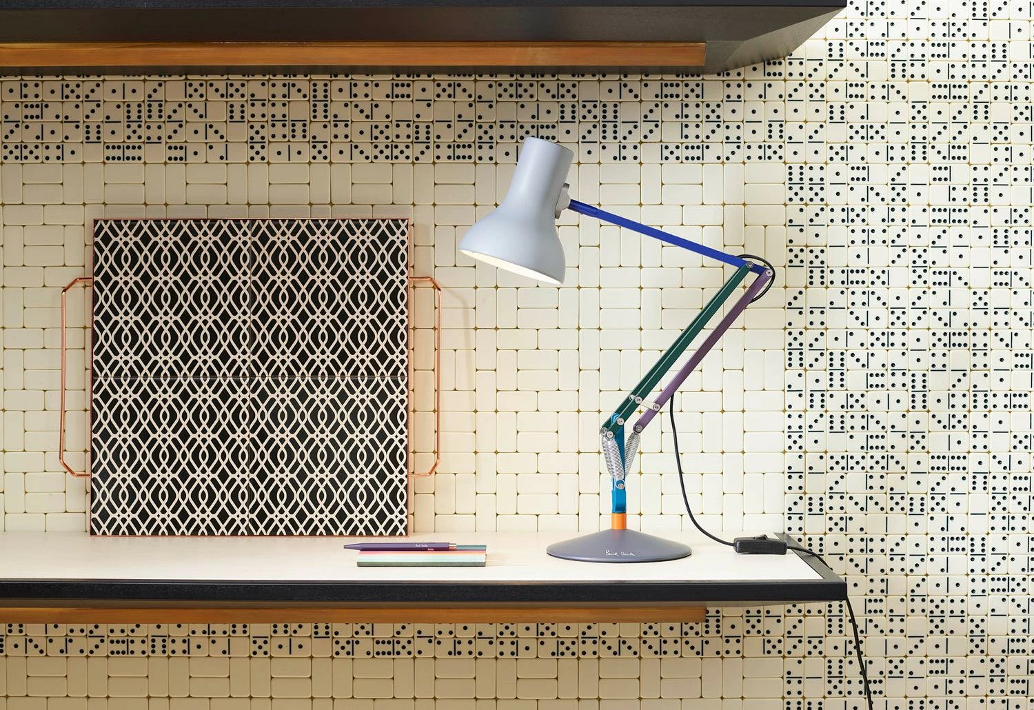 Paul Smith’s interpretation of the classic Anglepoise Type75 table lamp, combines the unmistakable form and function of an Anglepoise with the quintessential style of Britain’s foremost designer, in a smaller scale.