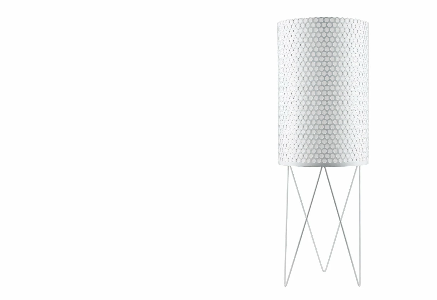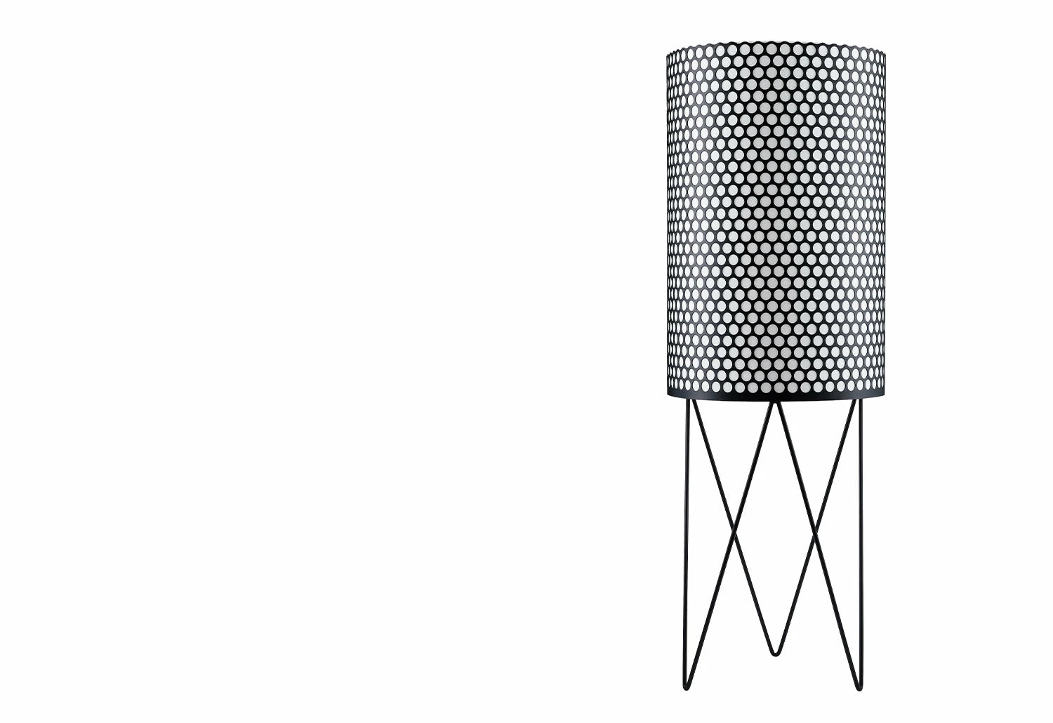 When designing the PD2 floor lamp, Corsini was inspired by the building itself, taking inspiration from the vaulted ceilings to create the base of the light and looking to the chimneys to develop the cylindrical form and perforated details of the lampshade.
