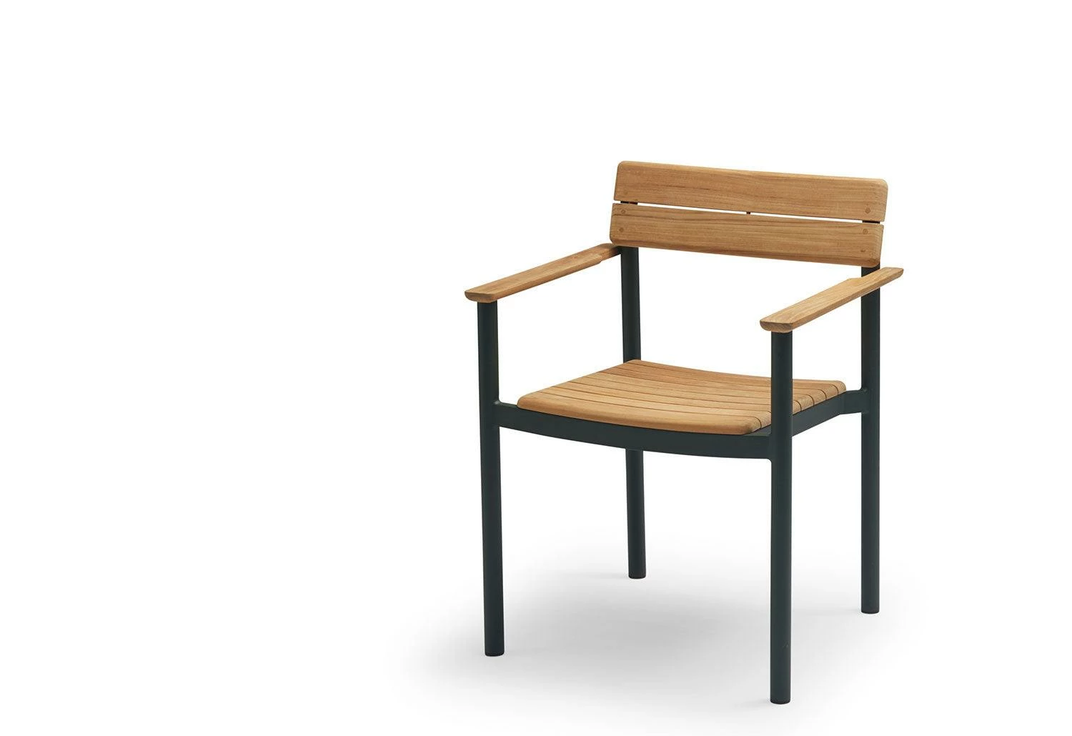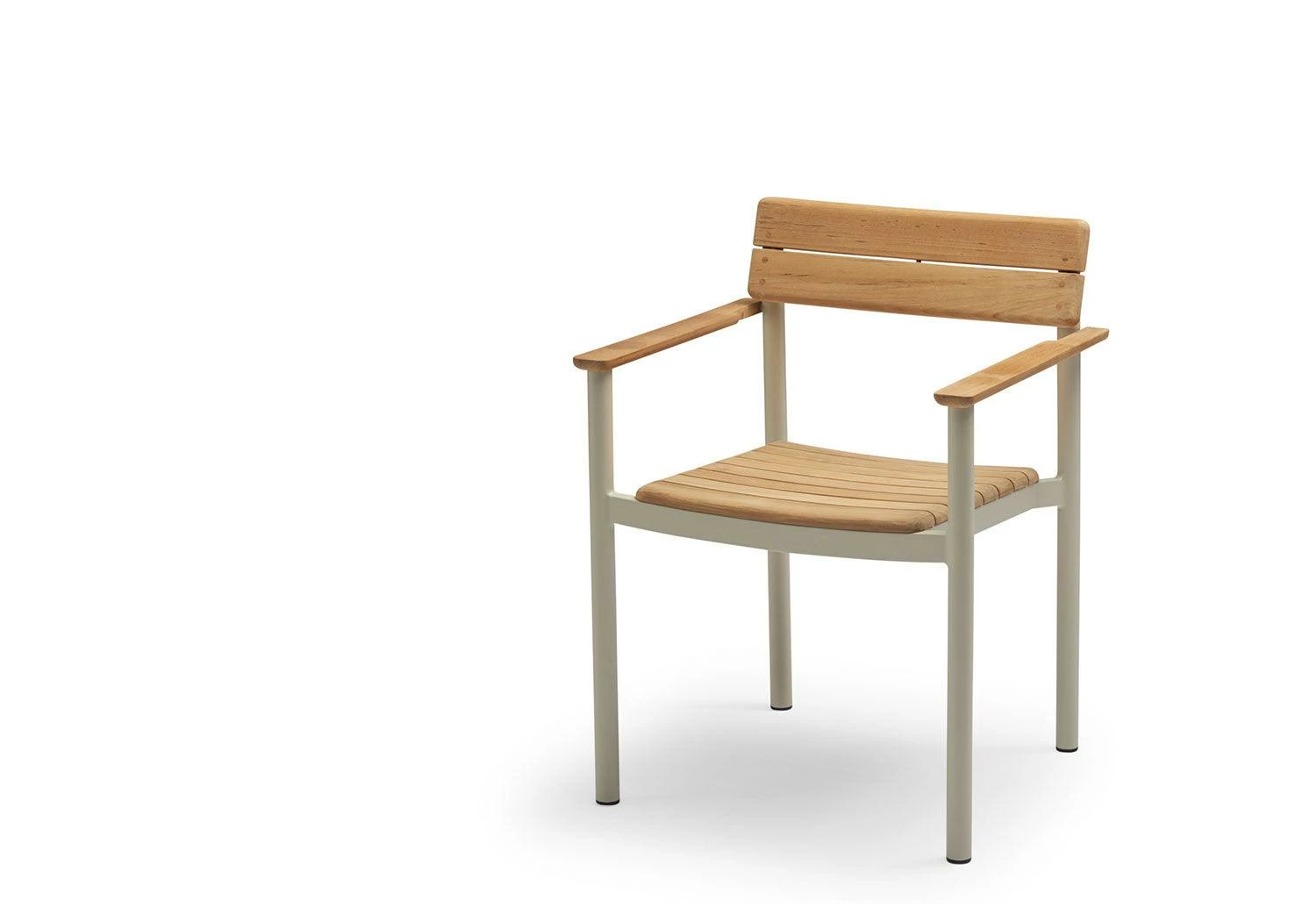 At home on a leafy porch or by the pool on a hotel terrace, the Pelagus armchair is a great choice for outdoor dining. Featuring an aluminium frame in Light Ivory or Hunter Green colour, the chair also comes with an FSC certified teak seat making it a great option for outdoor use.