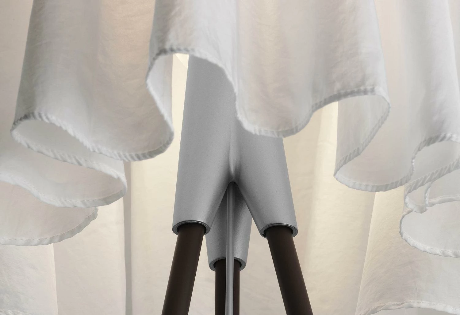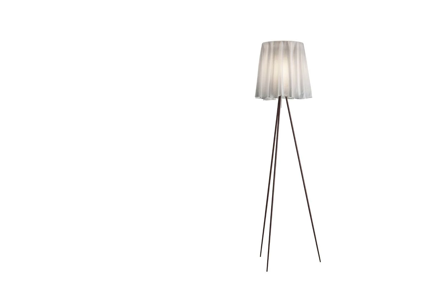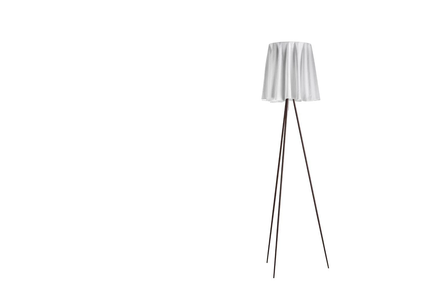 The design of the Rosy Angelis was inspired by the way a tablecloth drapes over a table. The lightweight fabric shade has a natural, fluid pleated form and diffuses the light from the lamp.
