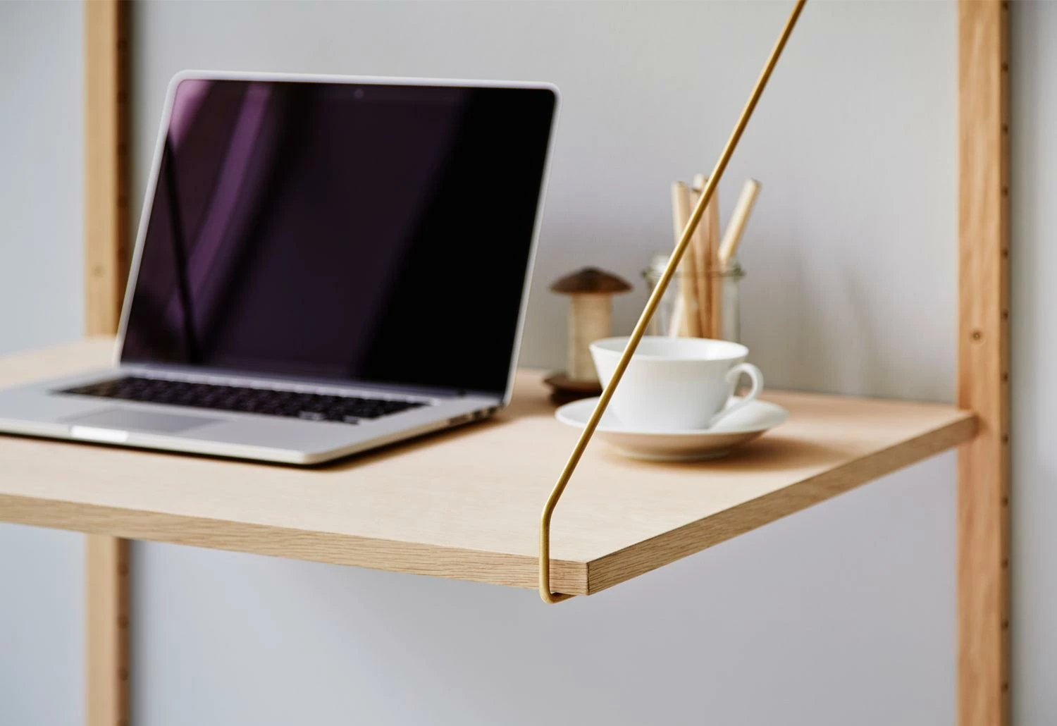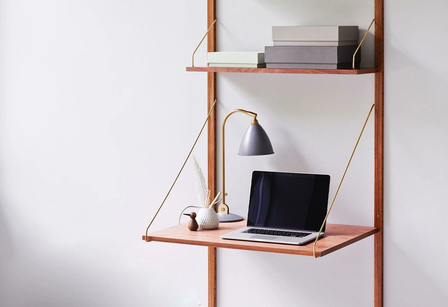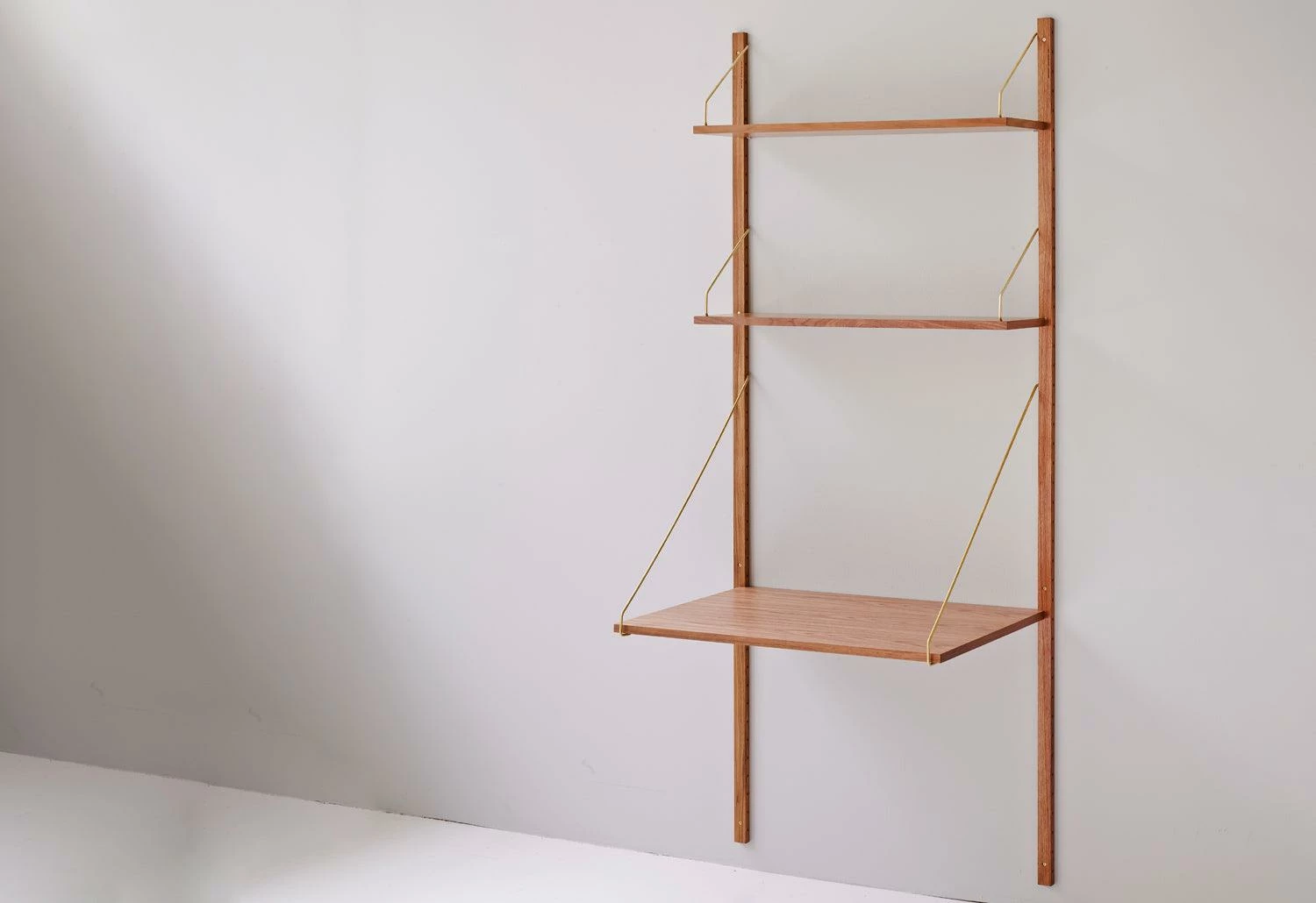 2 special hangers per desk shelf included, available in brass or stainless steel.