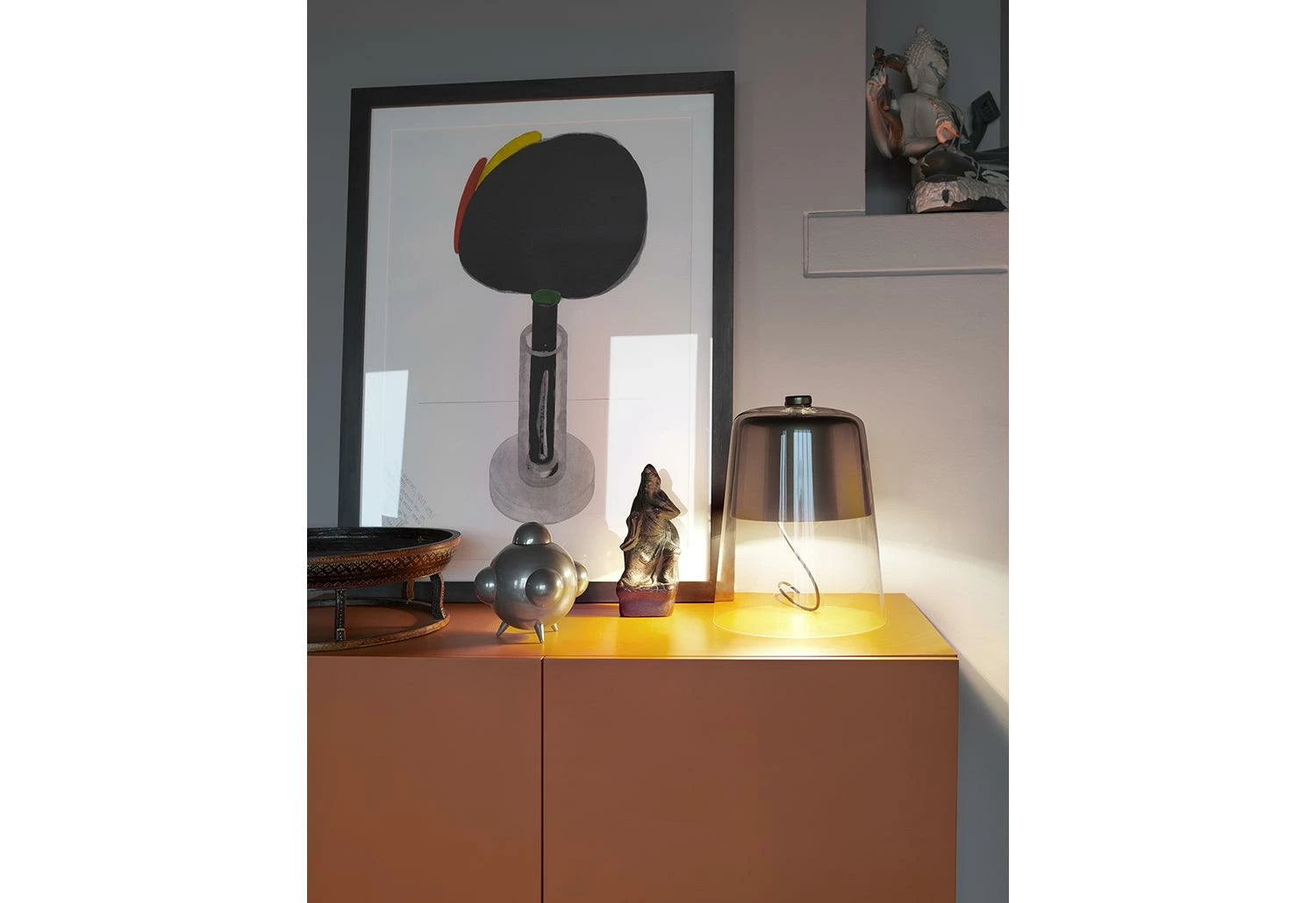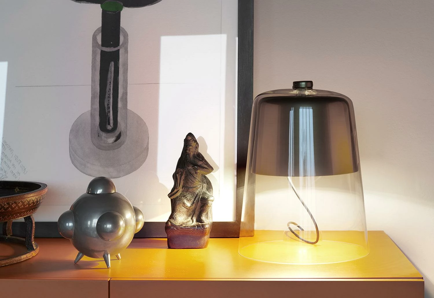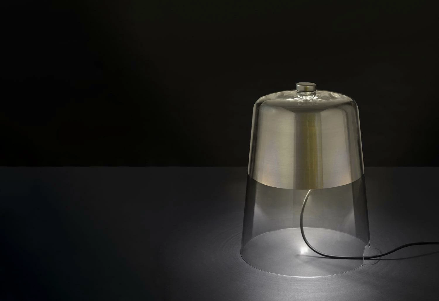 Sam Hecht and Kim Colin have dispensed with the most characteristic components of the table lamp – the base and the stem – by resting the glass structure directly on its standing surface.
