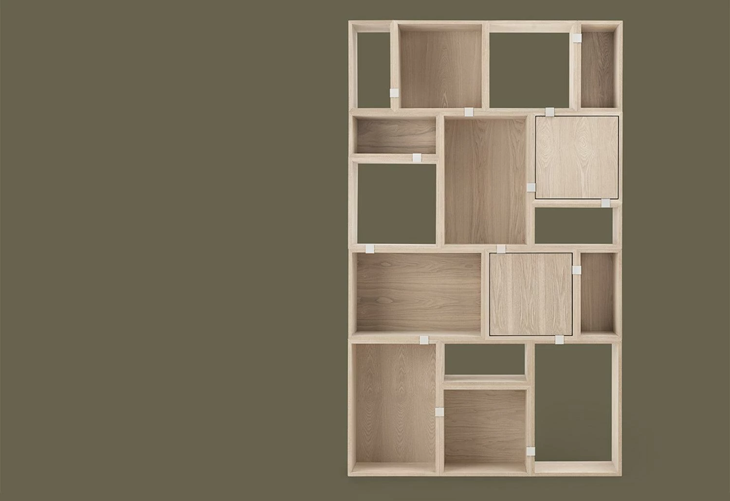 Stacked shelf system with door by JDS Architects for Muuto.