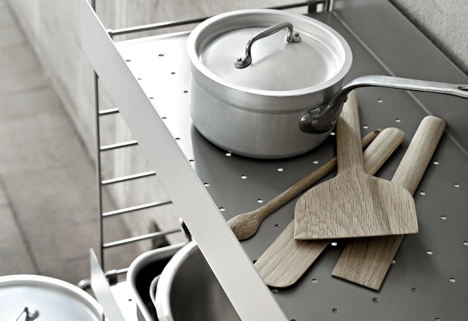 The String System is a robust and versatile shelving system offering different shelves depths, which can be combined and enriched with separate filing or display cabinets, magazine racks, table, drawers, desk, etc. modules.