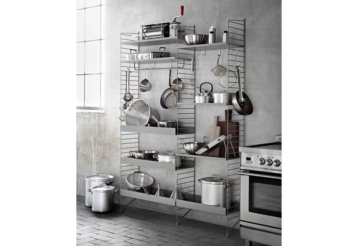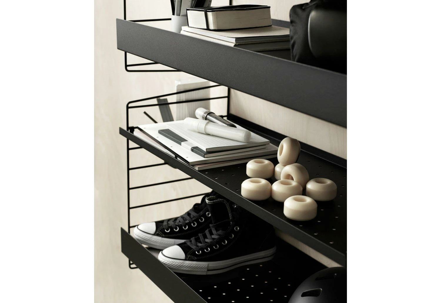 String System metal shelves, part of the String System shelving system by Nisse Strinning for String.