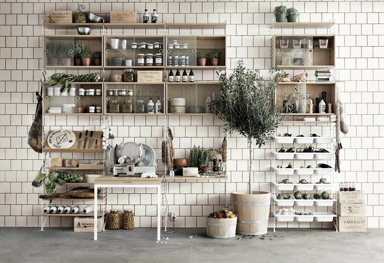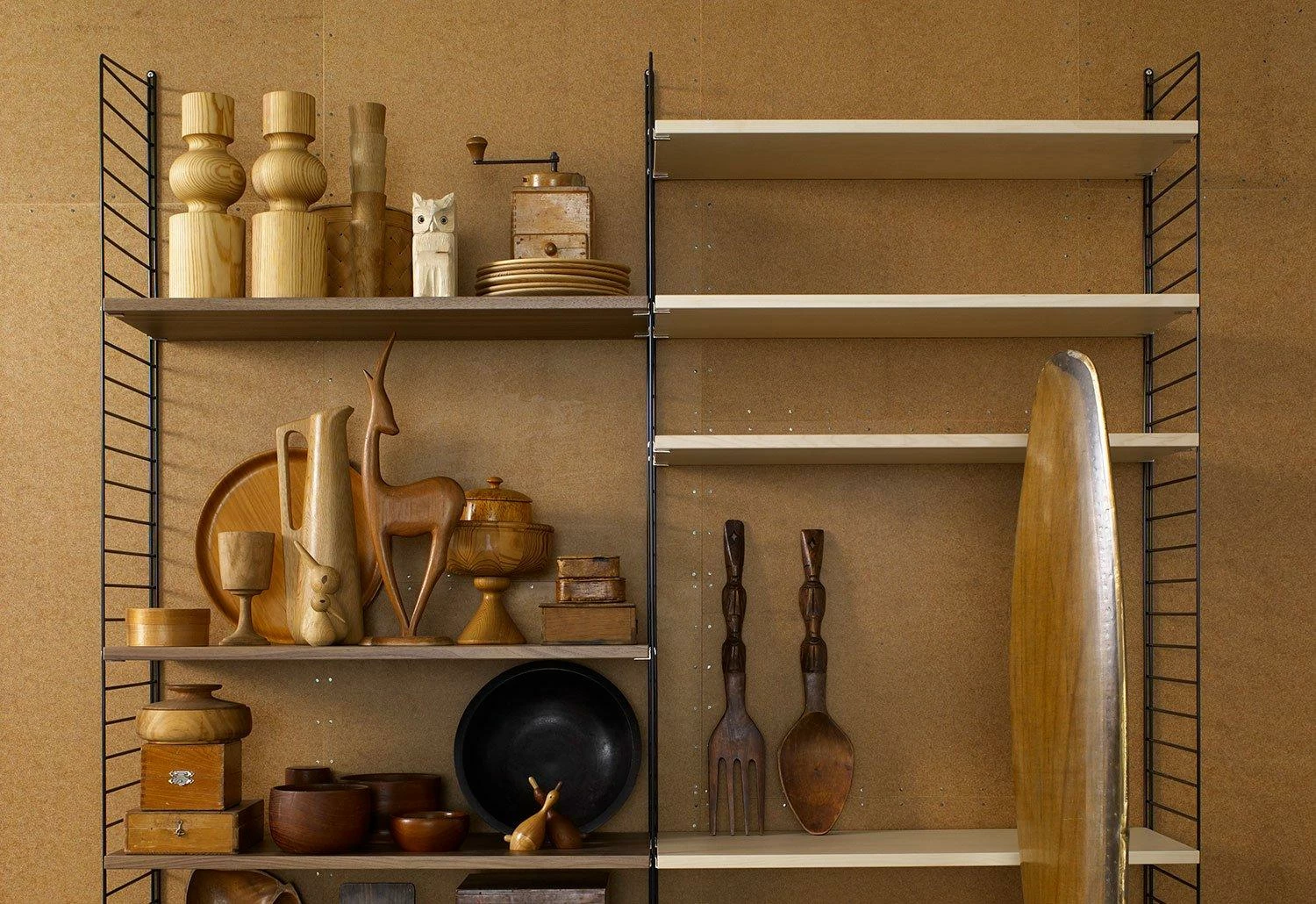 String System wooden shelves, part of the String System shelving system by Nisse Strinning for String.