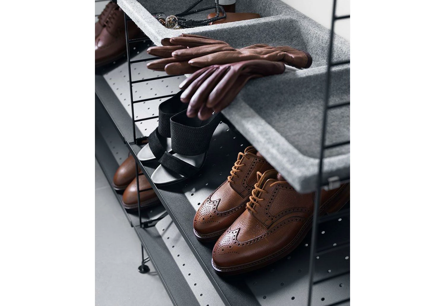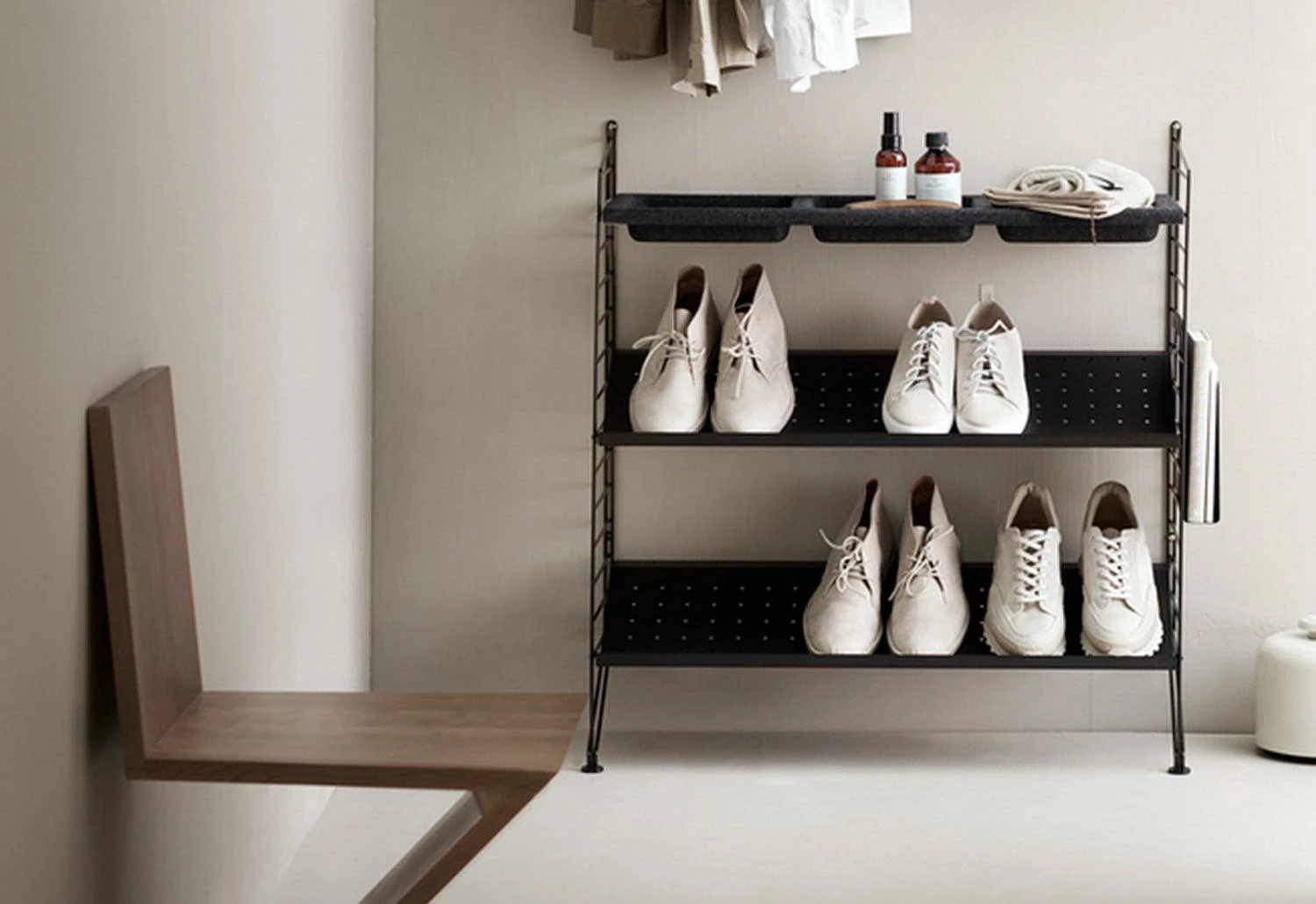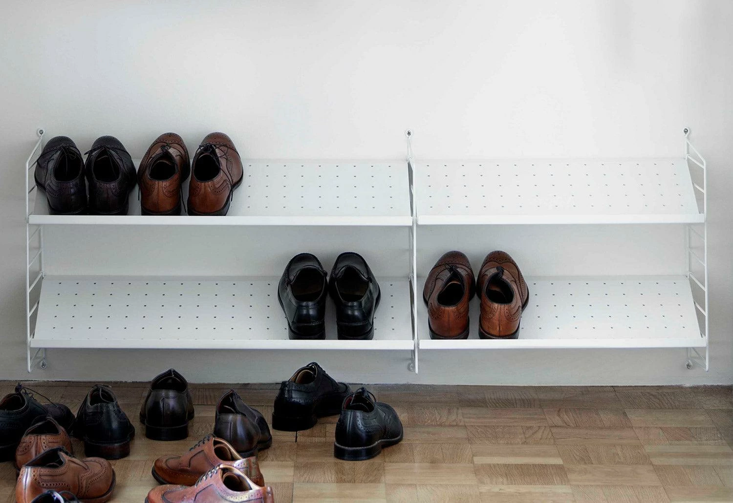 String System metal shoe shelves, part of the String System shelving system by Nisse Strinning for String.