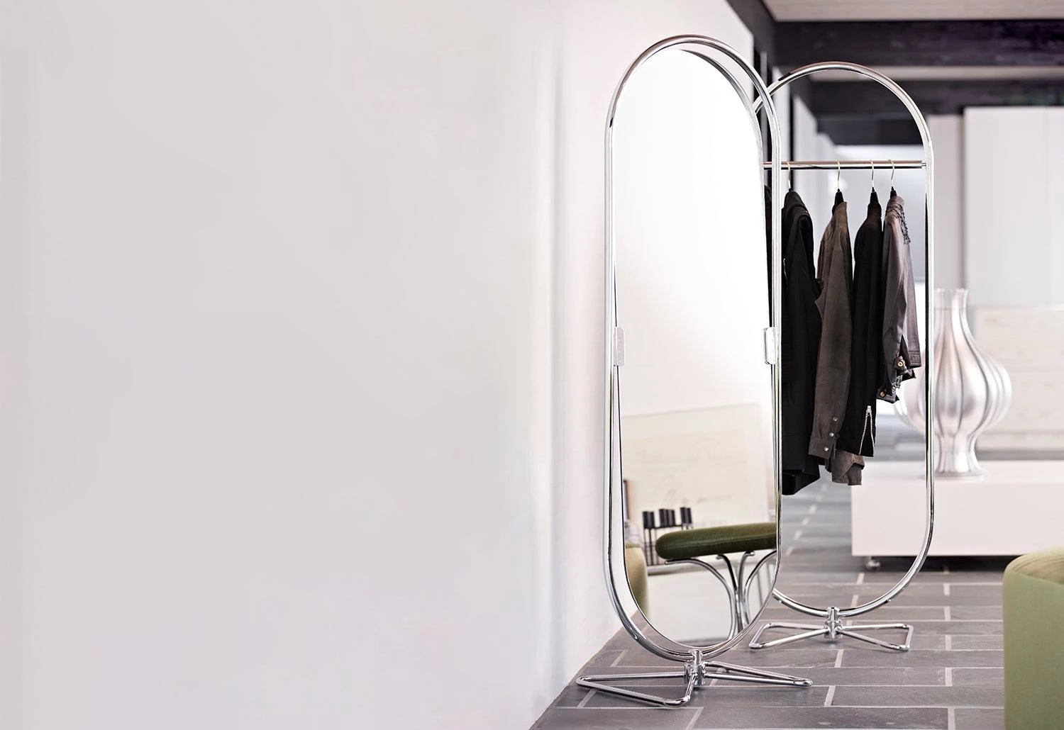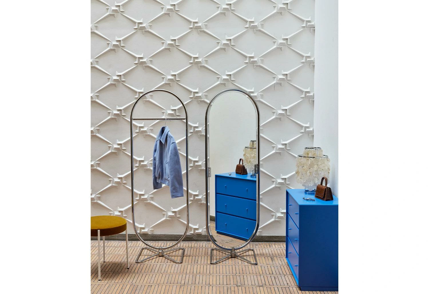 An all-in-one functional clothes rack, designed in a minimalist oval shape. The perfect clothes rack for hangers and organising clothes.