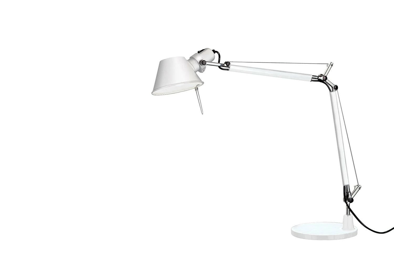 The Tolomeo table lamp is a design classic: an adjustable table light with base and cantilevered arms in polished aluminium, diffuser in matt anodised aluminium and joints and supports in polished aluminium. A system of spring balancing ensures ease of adjustment.