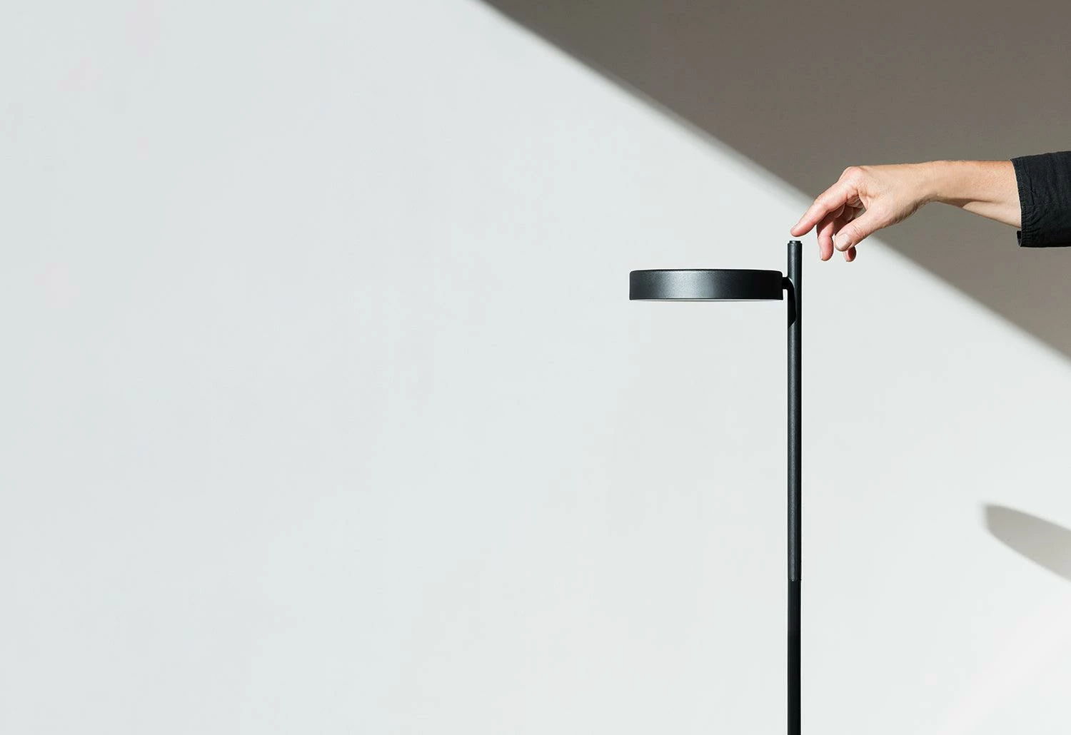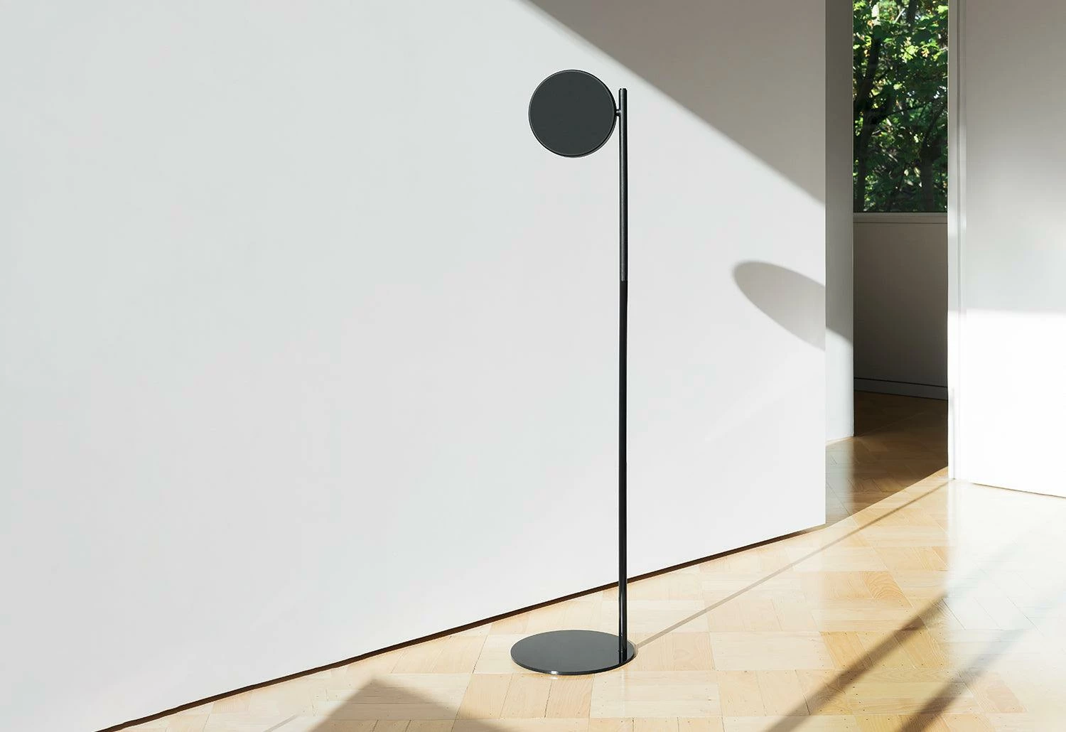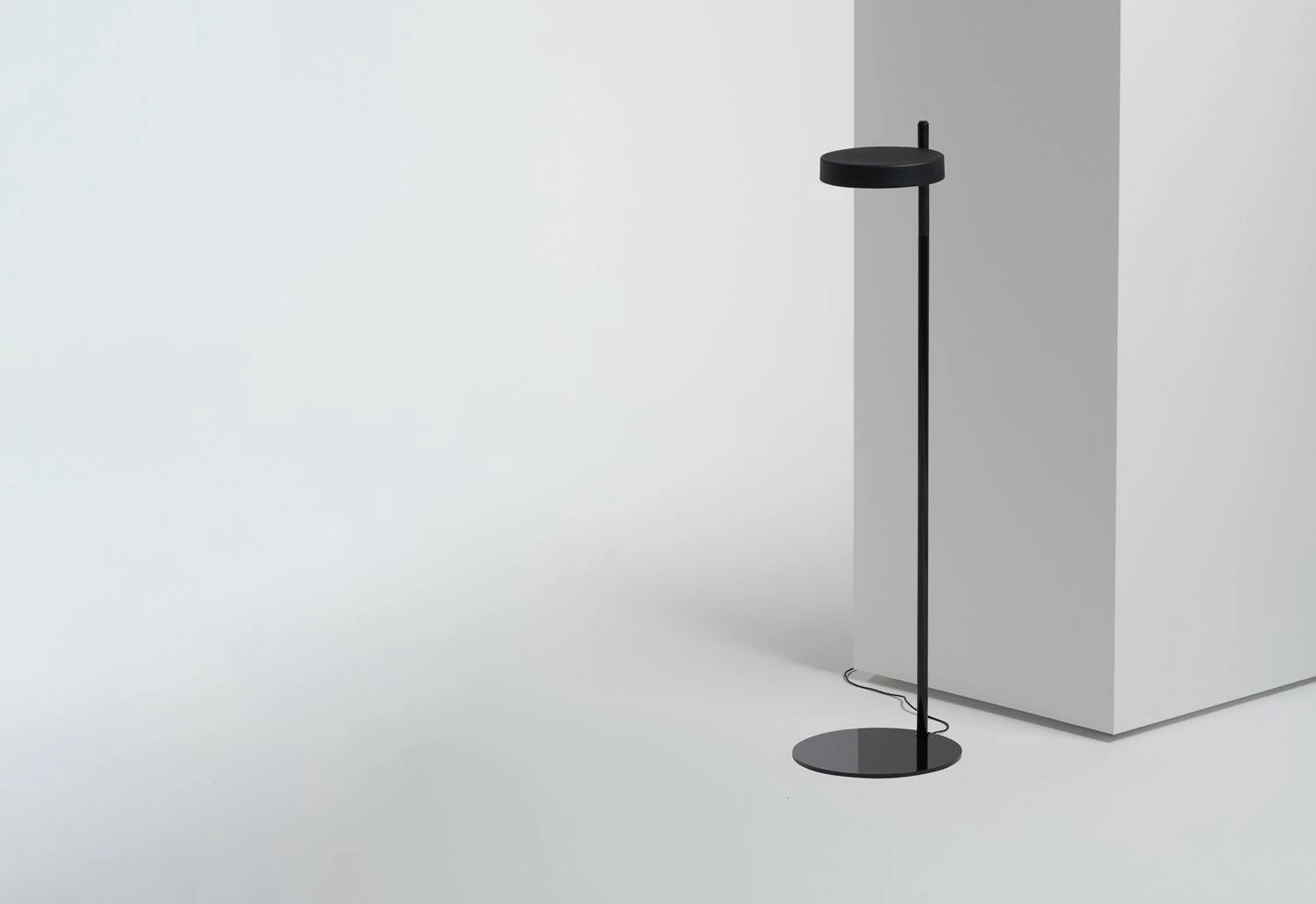 The w182 Pastille F1 is a minimalist floor light that illuminates with a soft, ambient light. Geometric in design, its amiable form features an adjustable disc shade connecting to a slender post.