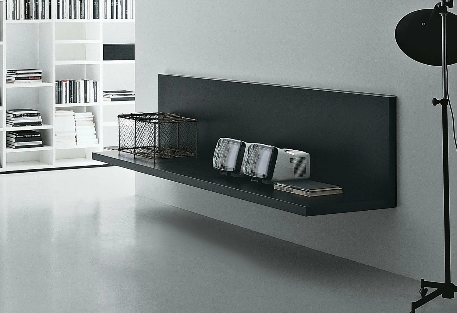 A combined shelf and work surface, the Web shelf is designed to hold equipment such as a TV or stereo or to be used as a desk.