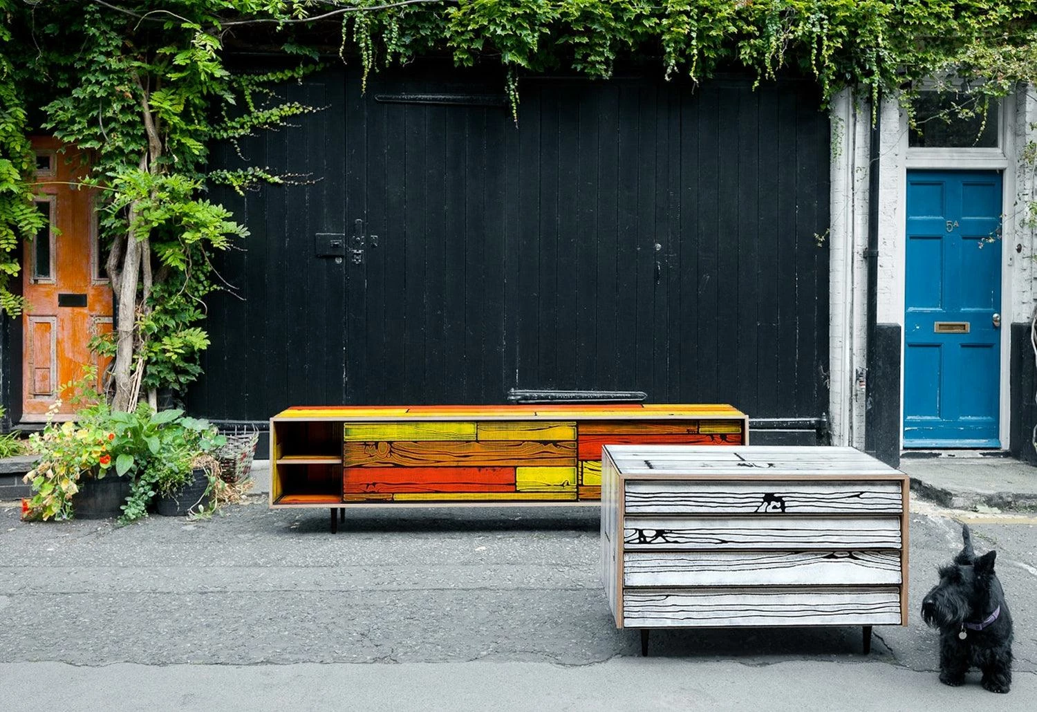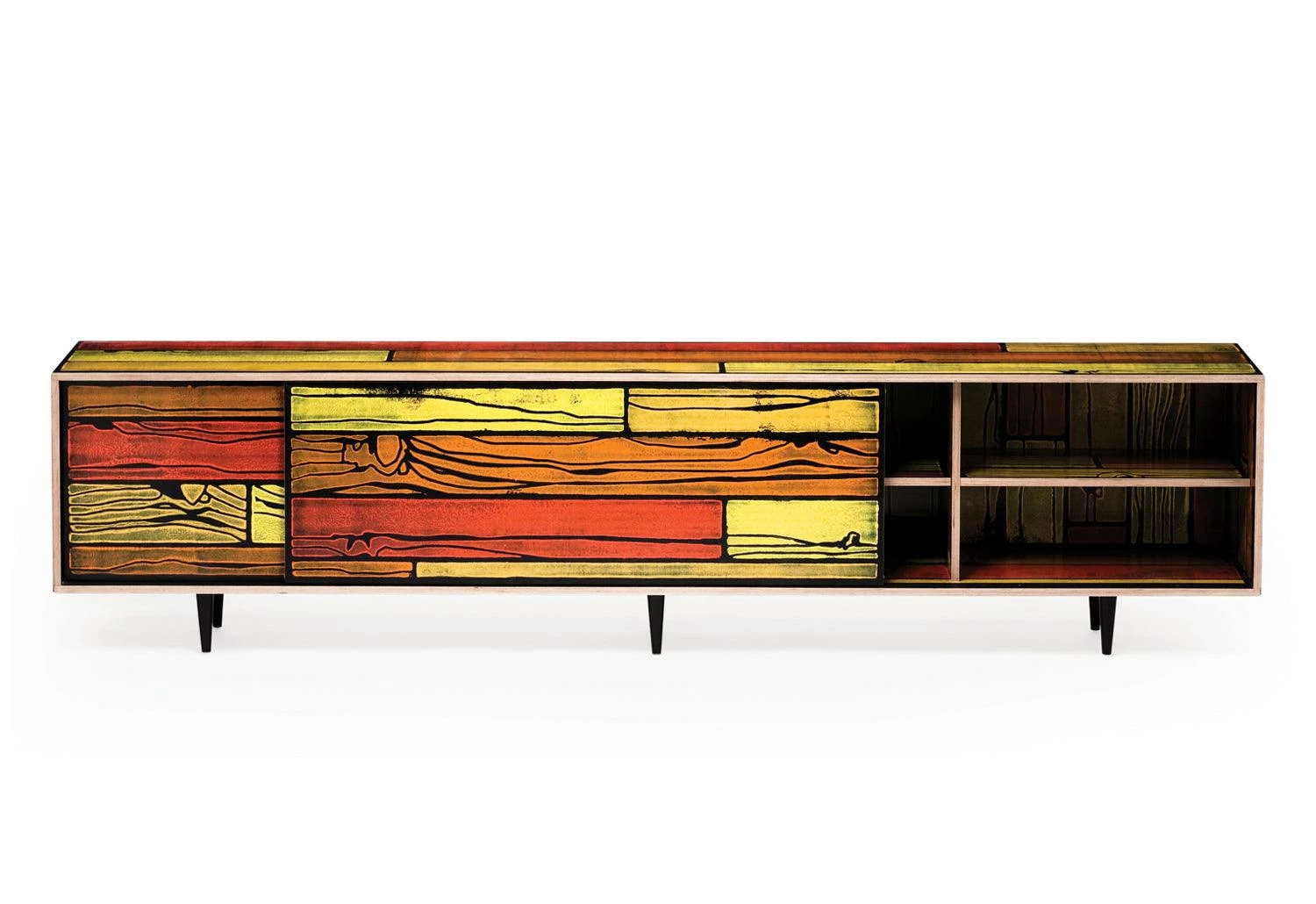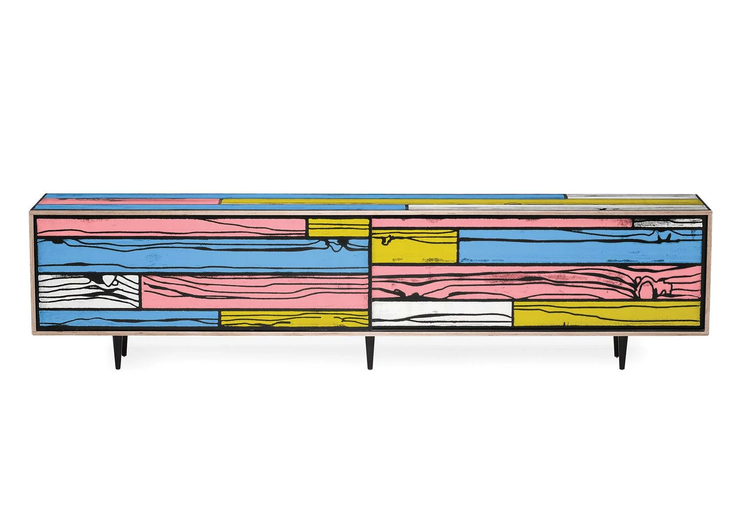 Wrongwoods long low cabinet by Richard Woods + Sebastian Wrong for Established + Sons.